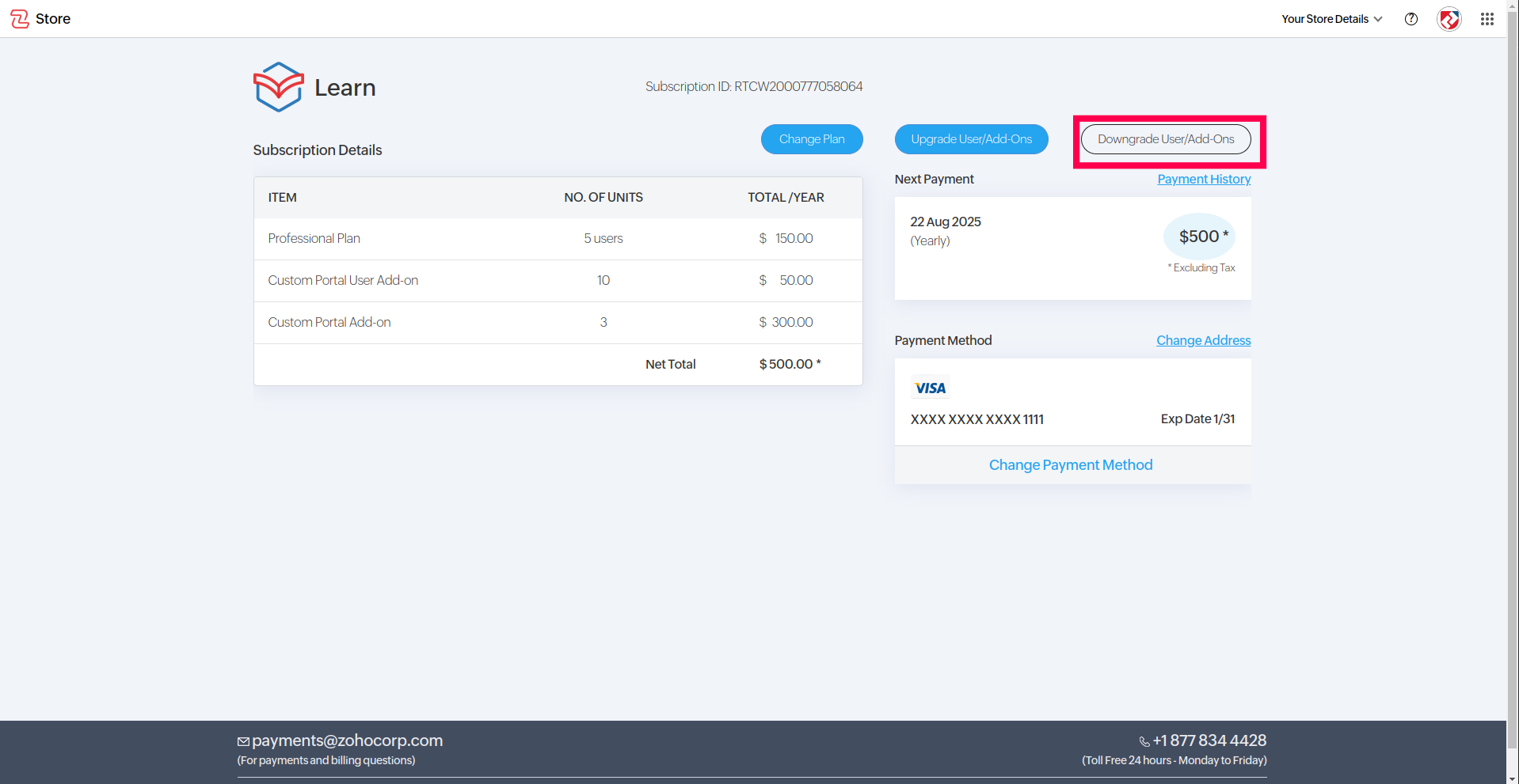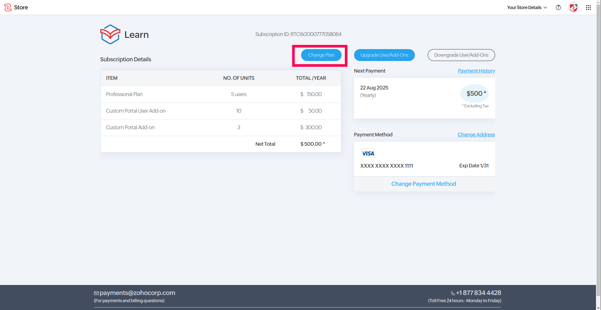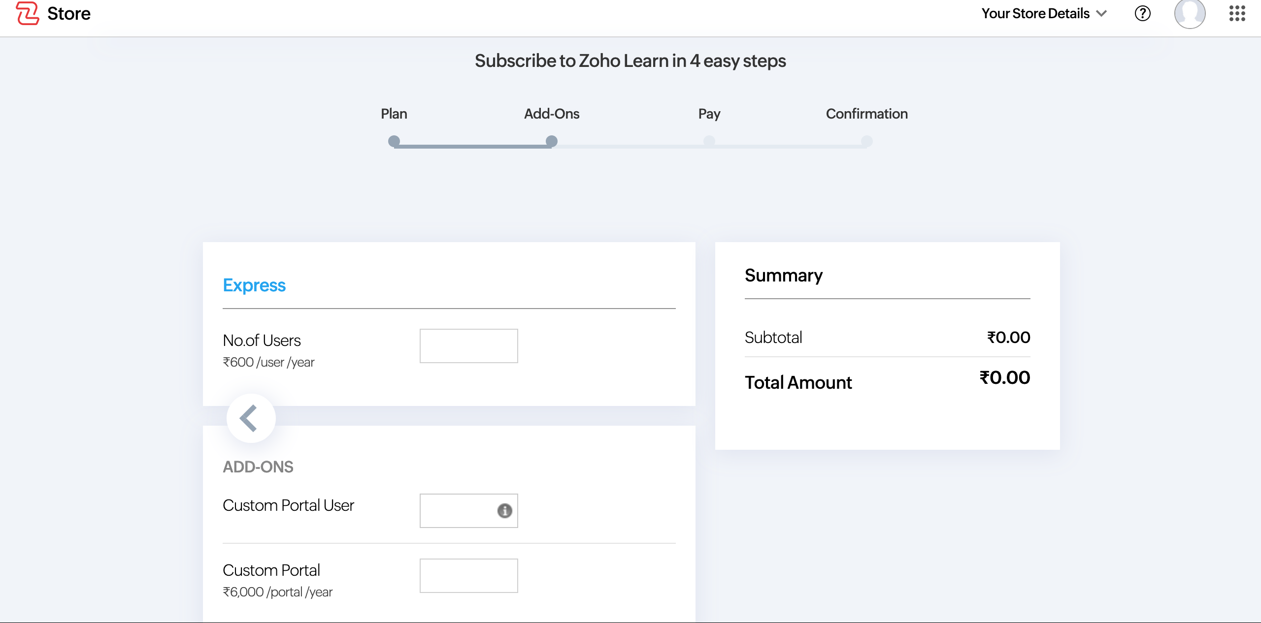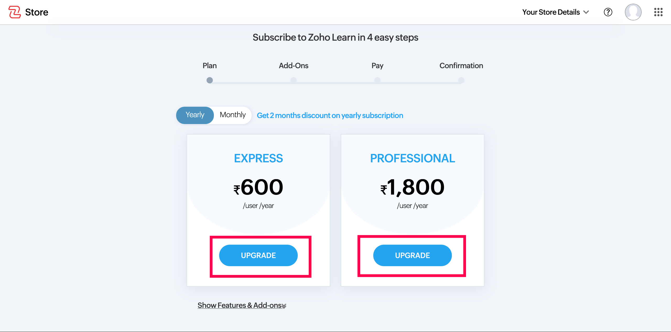 Choose the payment frequency (monthly or yearly) and the number of users you want to add to your plan.