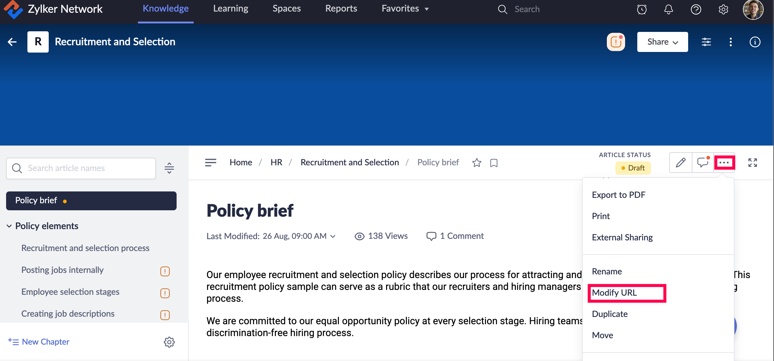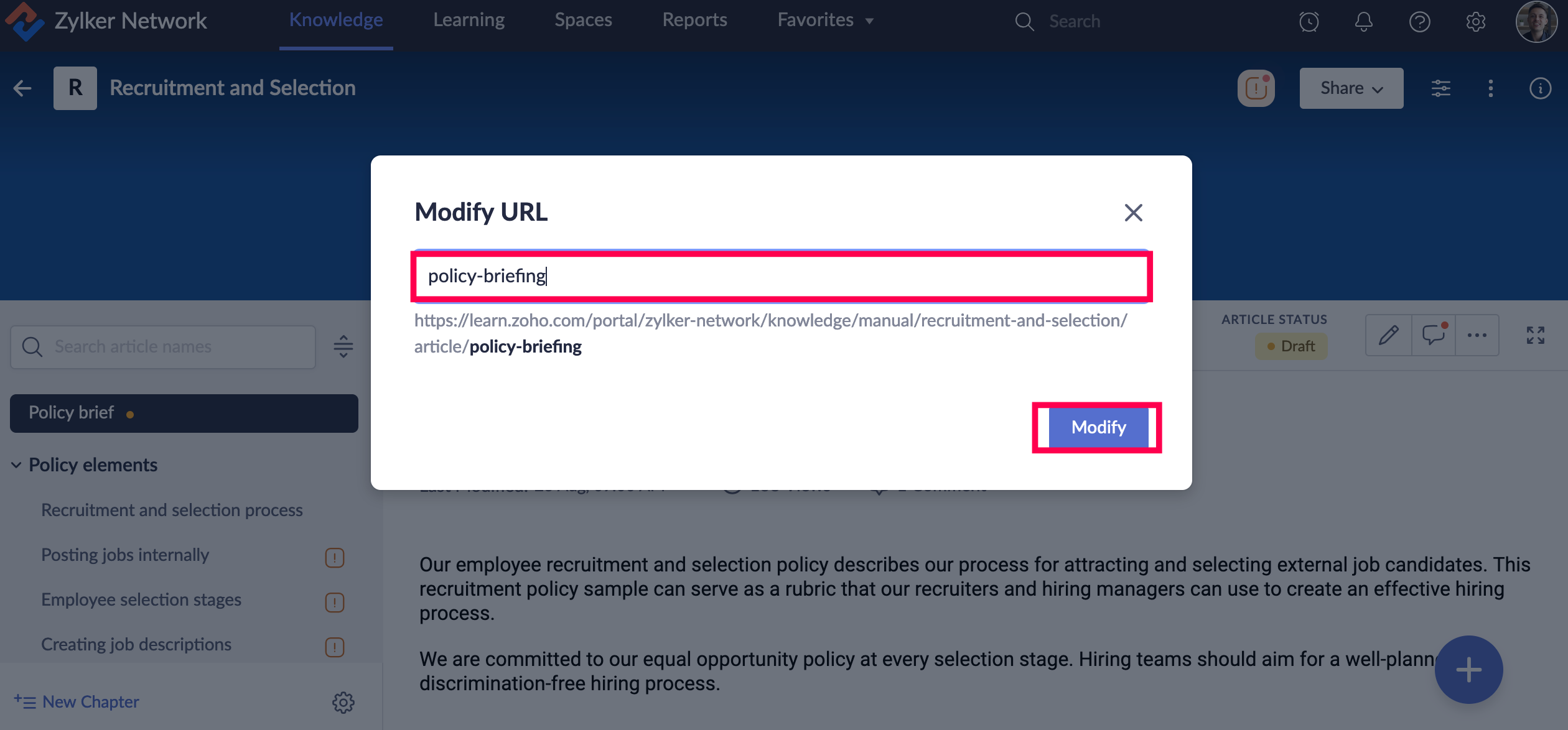 If the URL already exists, an error message will be displayed. Enter a new URL, then click Modify.