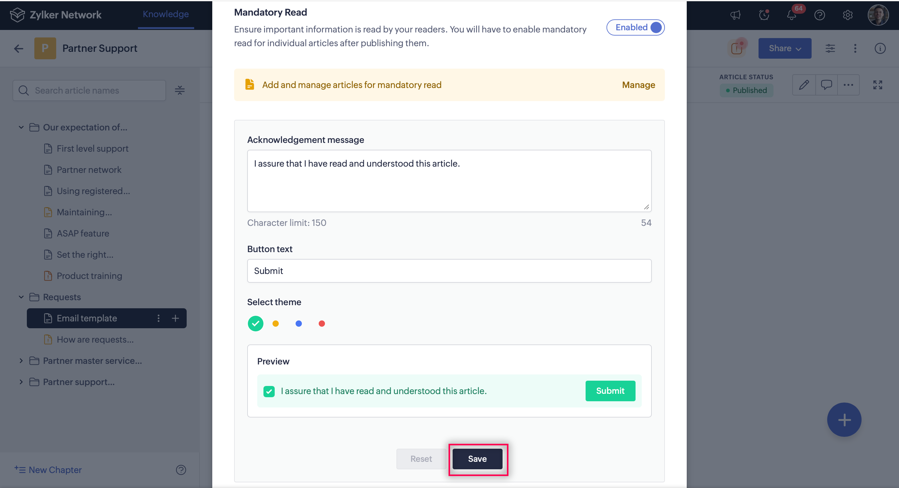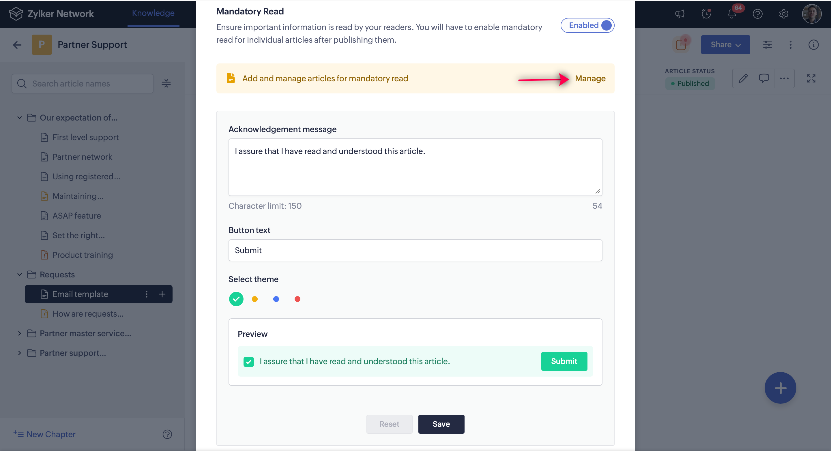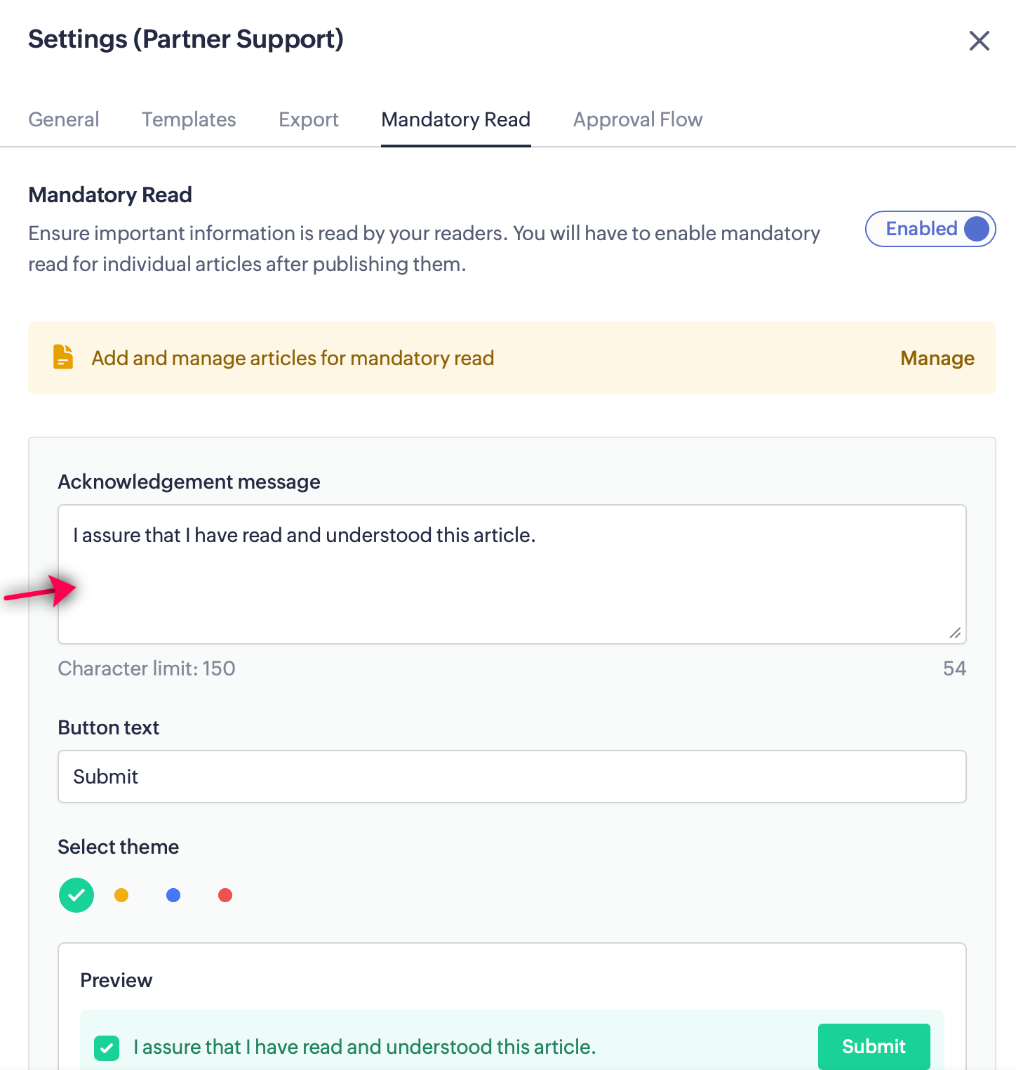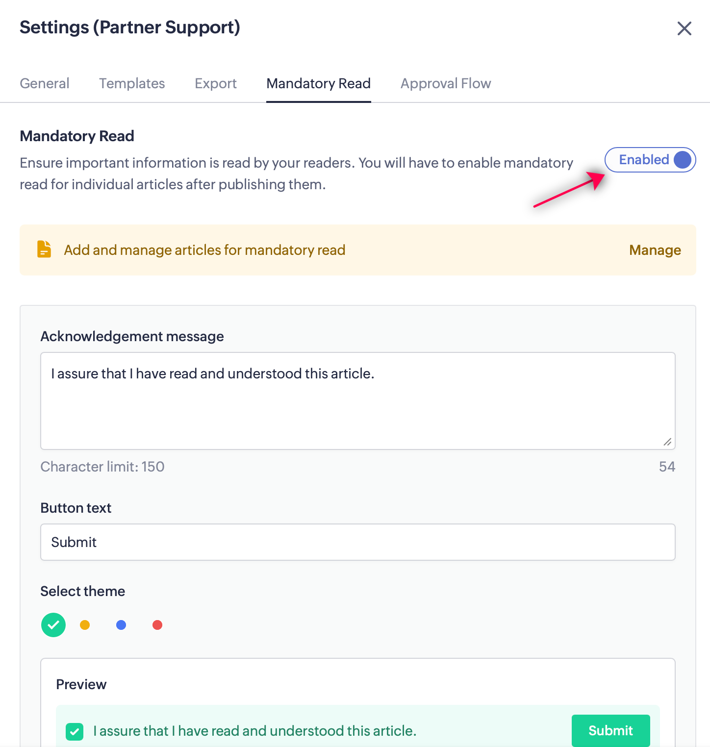Select Mandatory Read, then click Manage Articles.