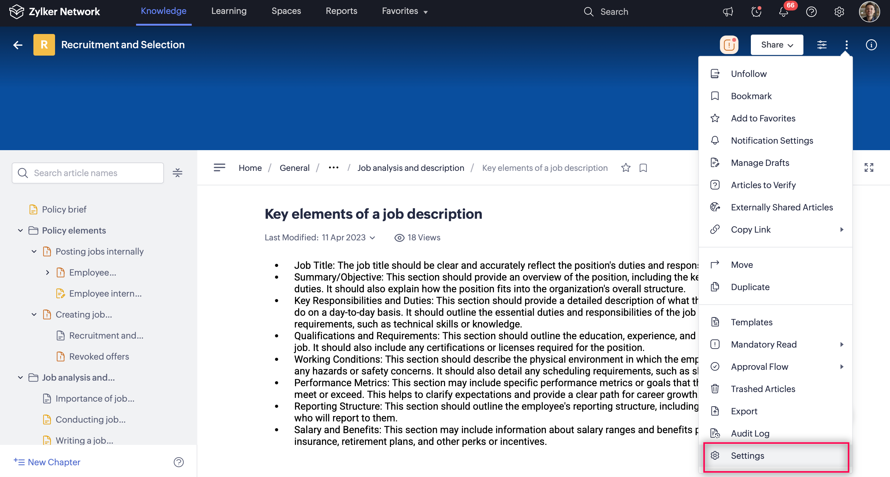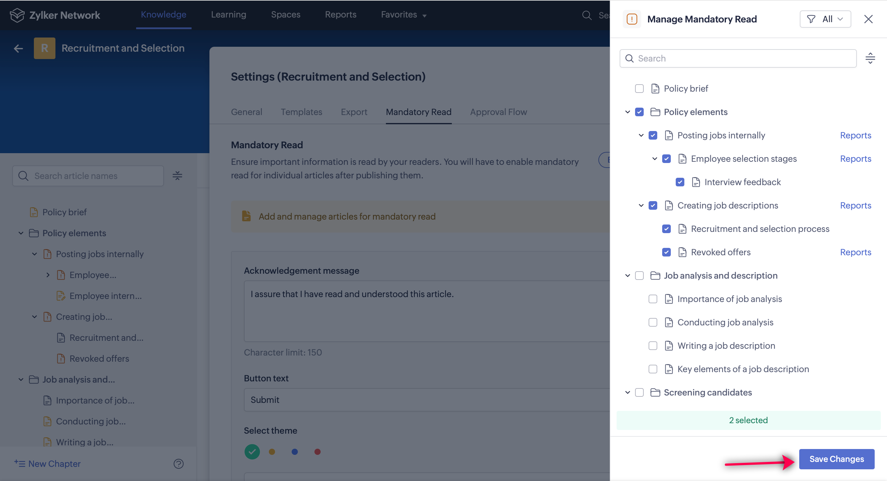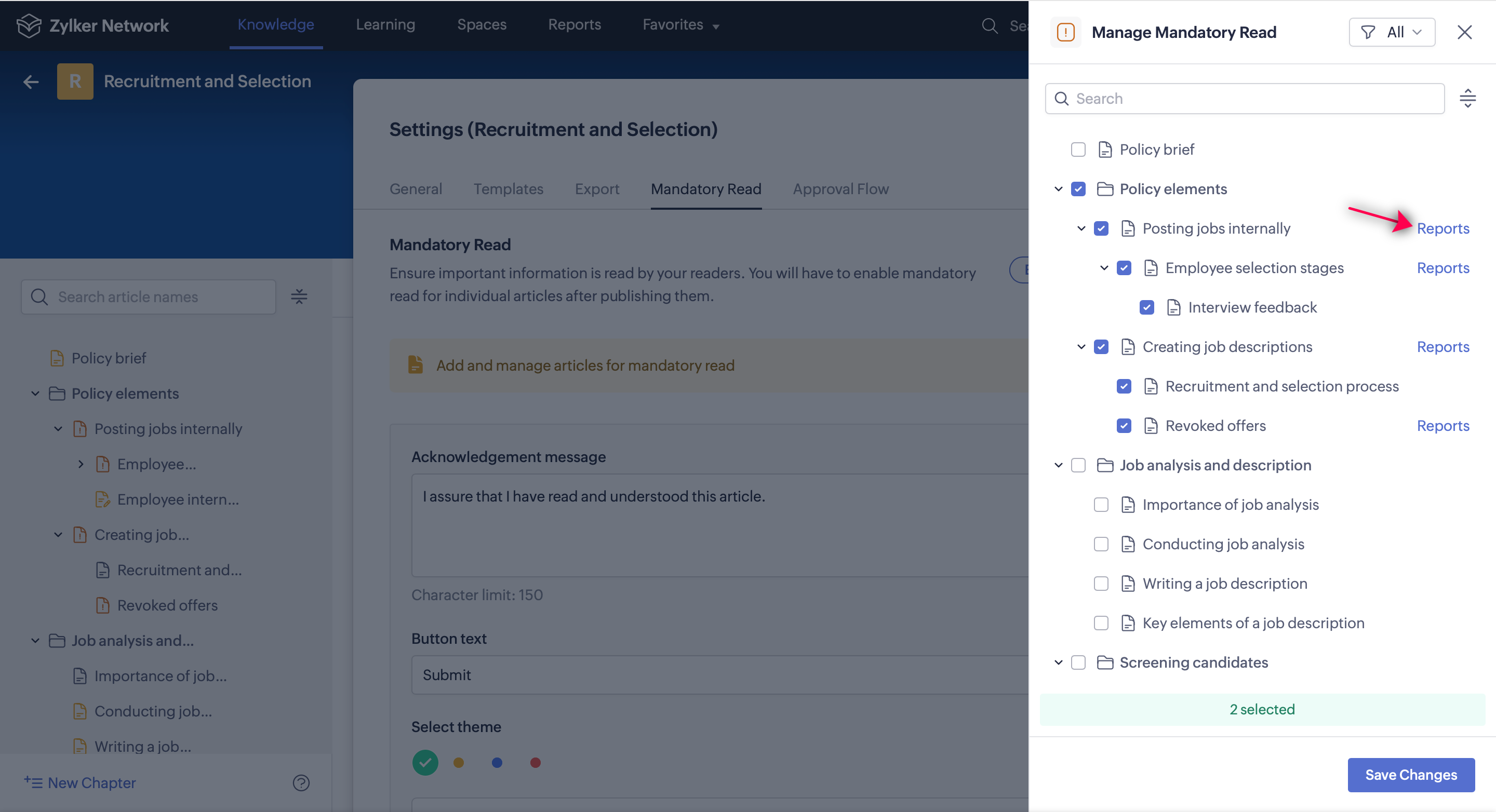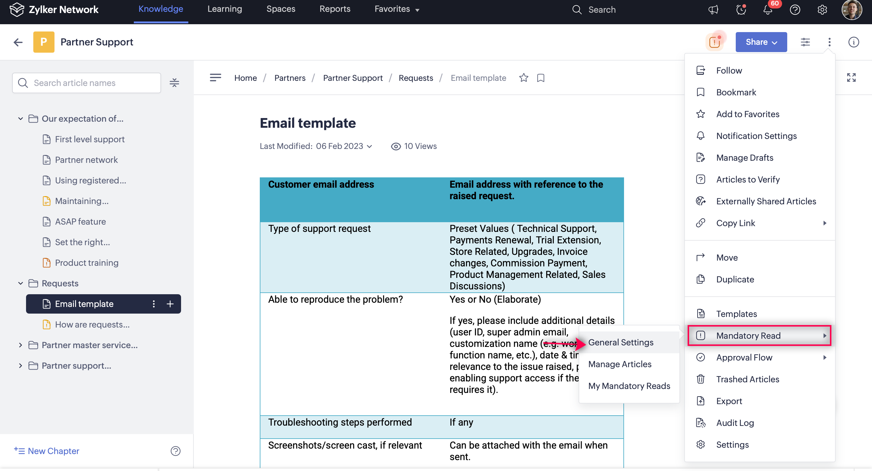Select Mandatory Read, then click Manage Articles.