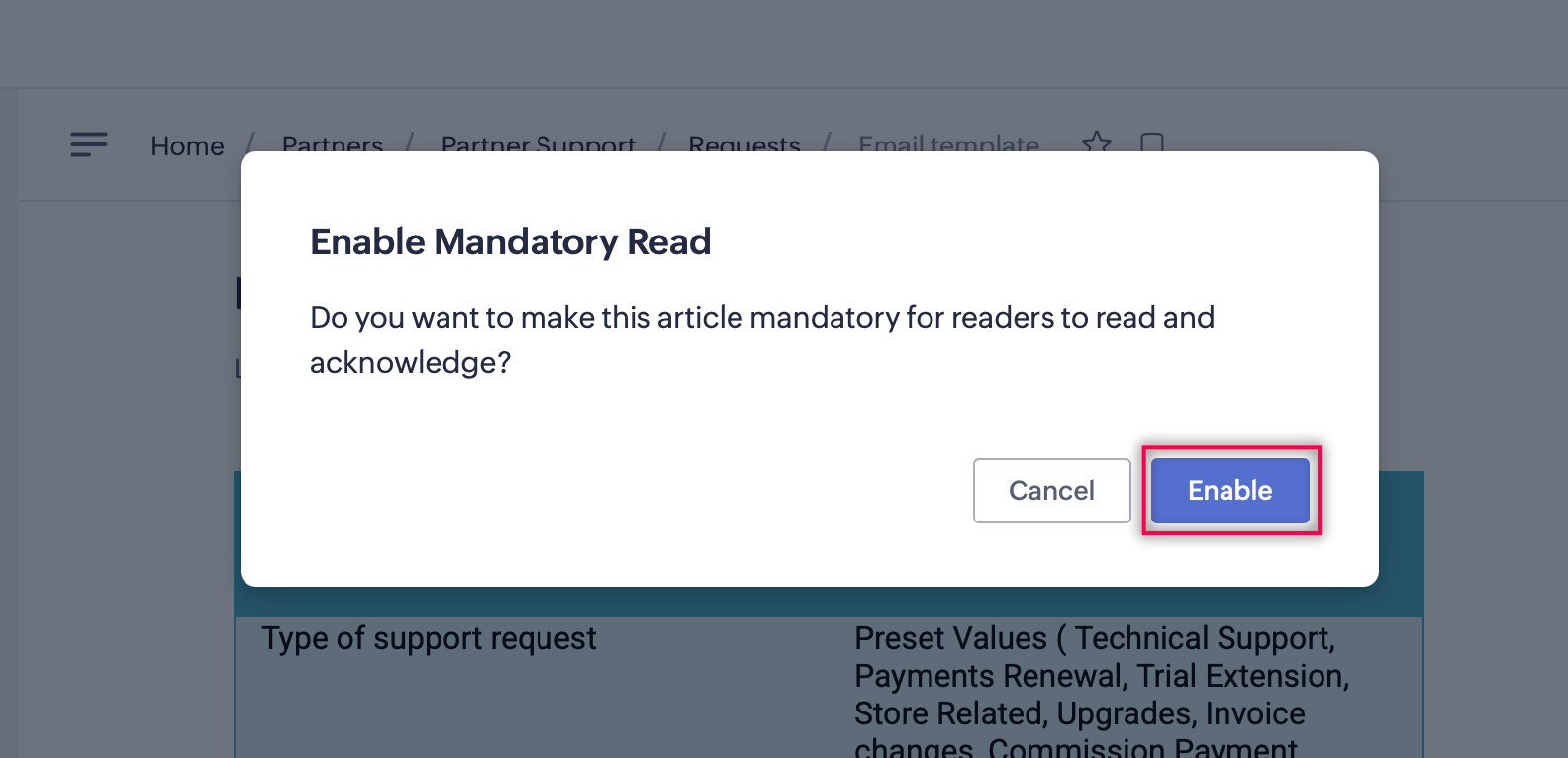 Click Enable Mandatory Read.