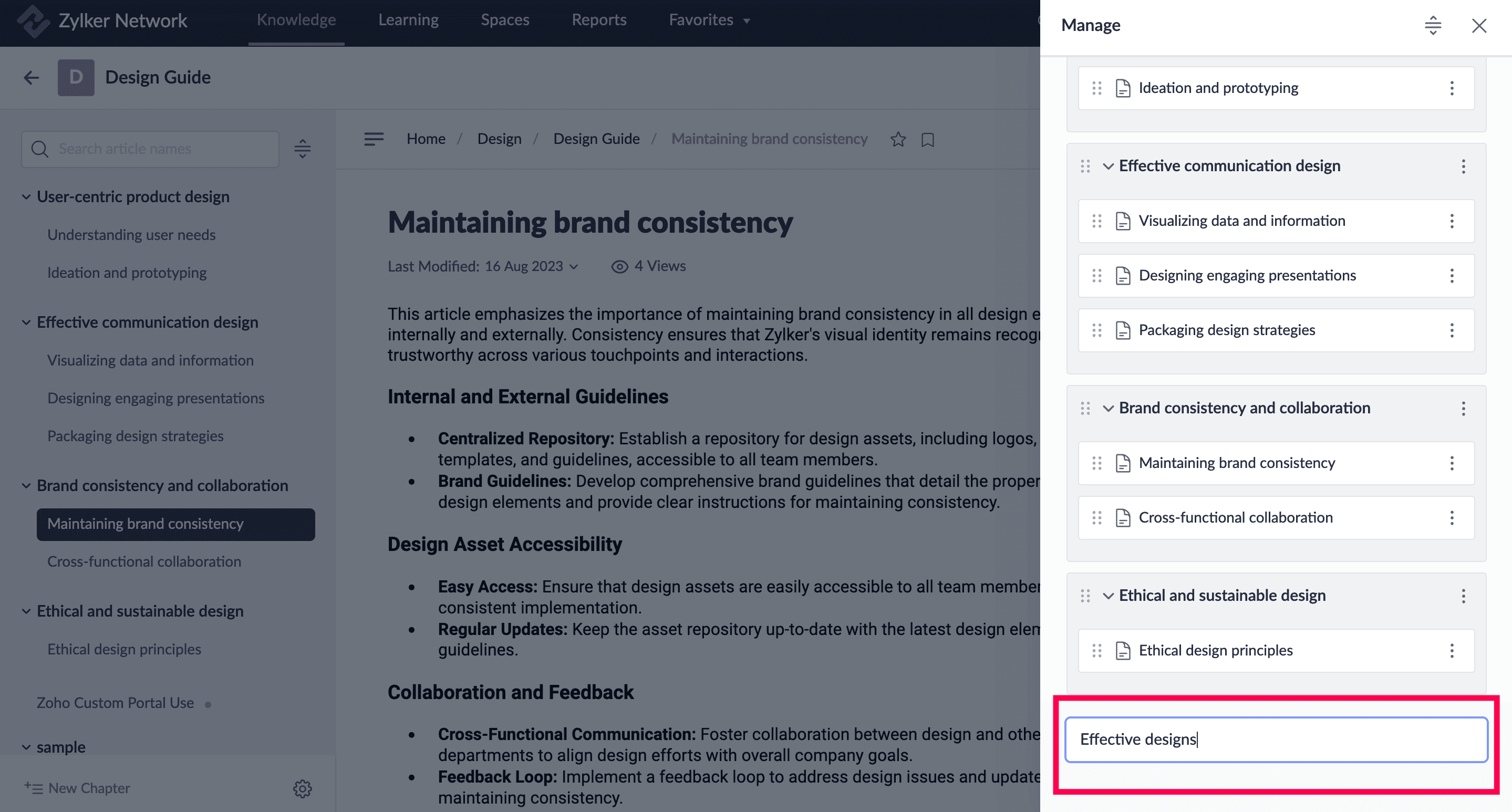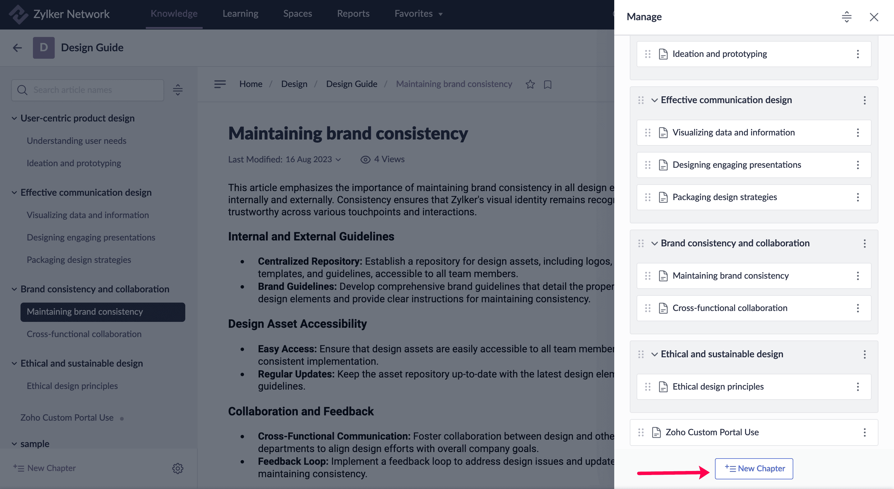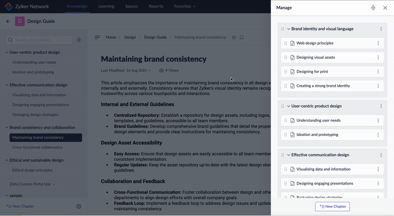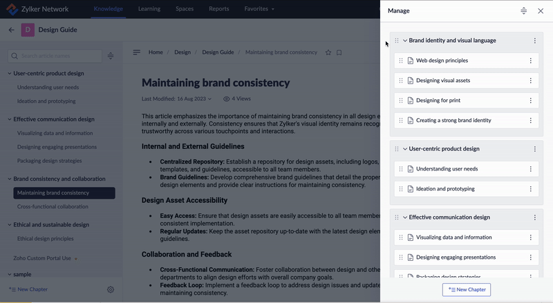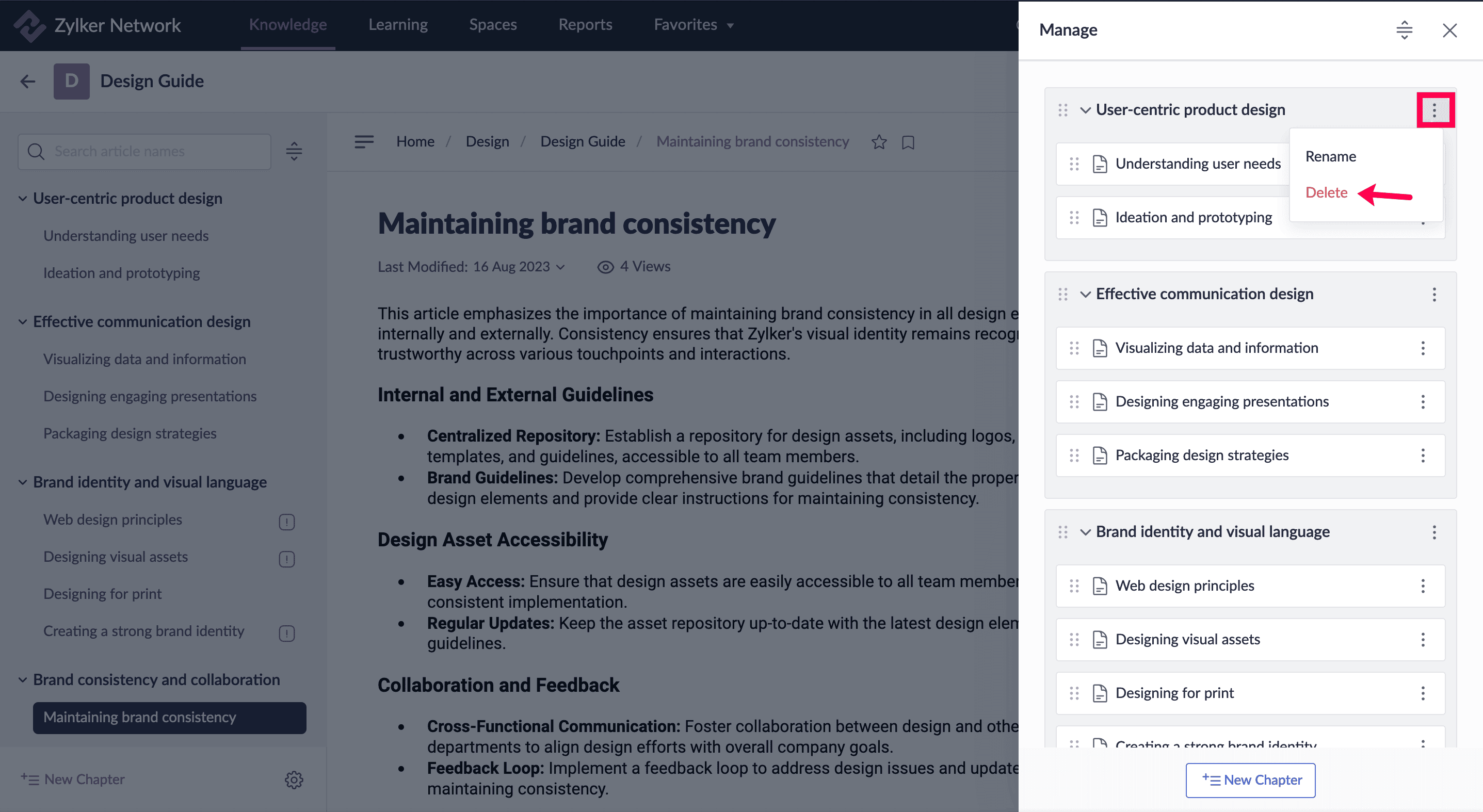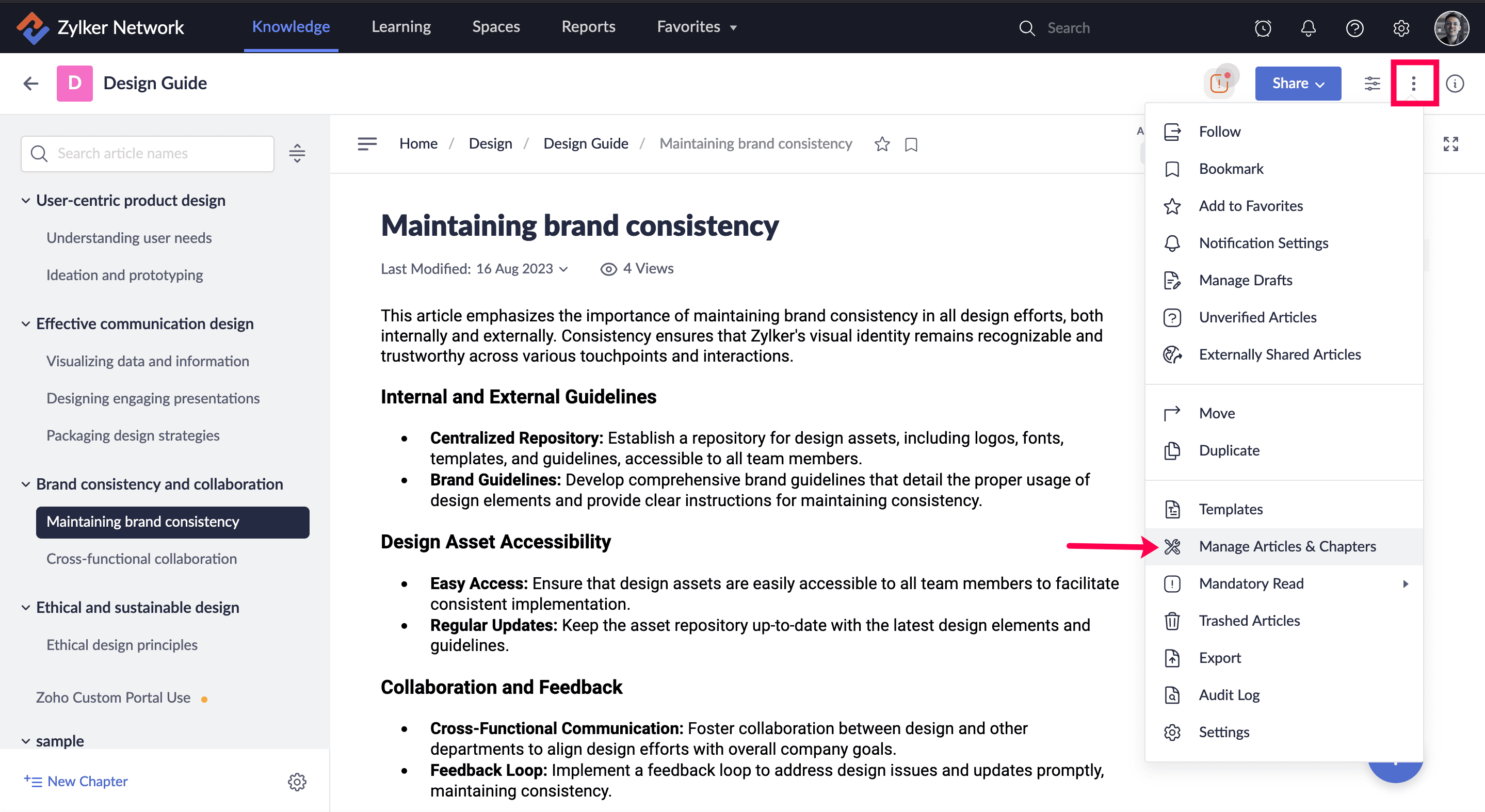 Click the More Options icon () and then click Manage Articles & Chapters.