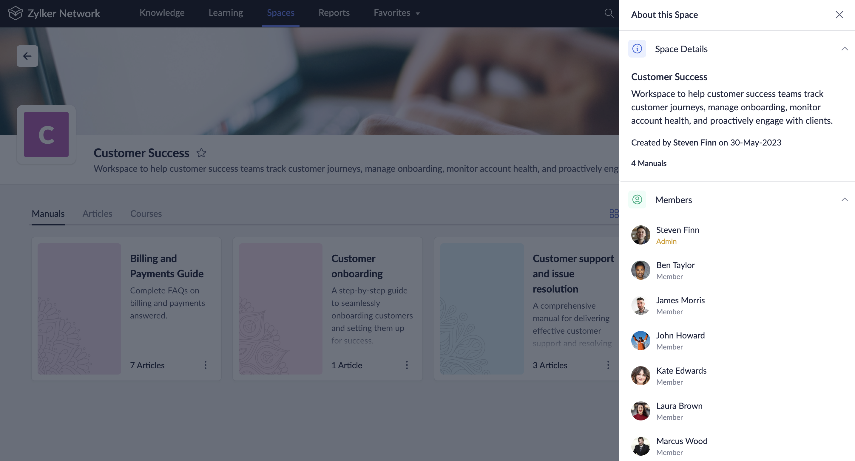 A space serves as a collaborative workspace where team members can collaborate, create, and share knowledge. These spaces may be tailored to specific departments or projects within your organization, such as Development, Customer Service, HR, and ...