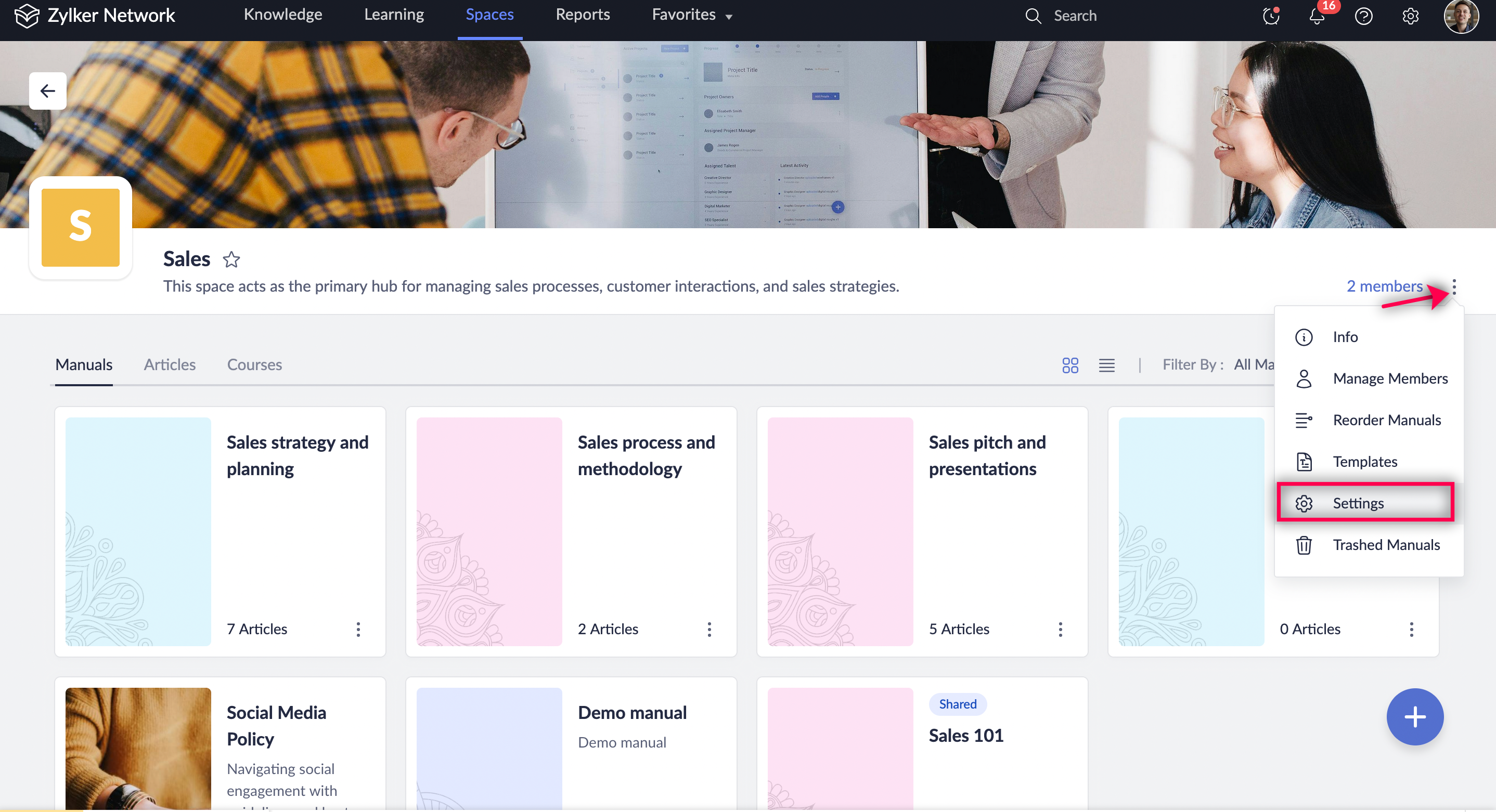 2. Admins Only: The space admins and the hub admin can create new manuals.