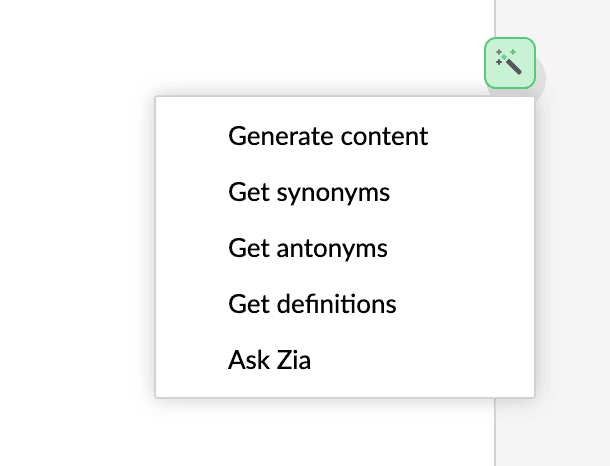 Select/ right-click the content and click the Zia Magic Wand.
