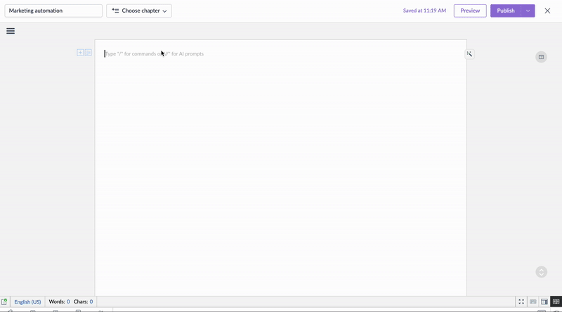 Ask Zia | Use // to summon and chat with Zia for help with creating and editing article content without switching tabs. |