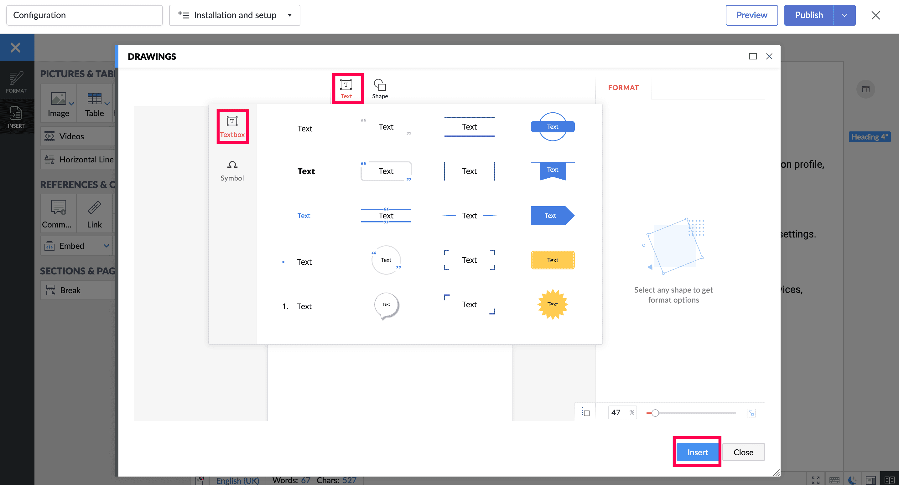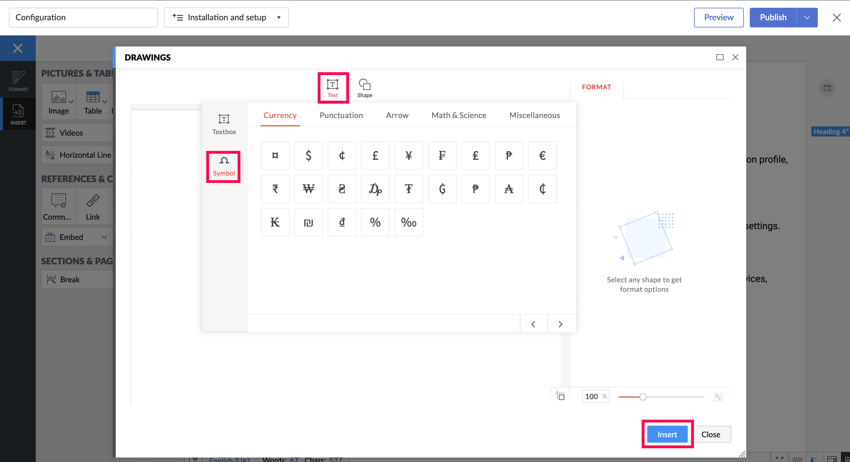 Use text boxes to highlight key information or important points in your content.You can insert text boxes, arrows, punctuation, currencies, mathematical and scientific symbols along with shapes and drawings.