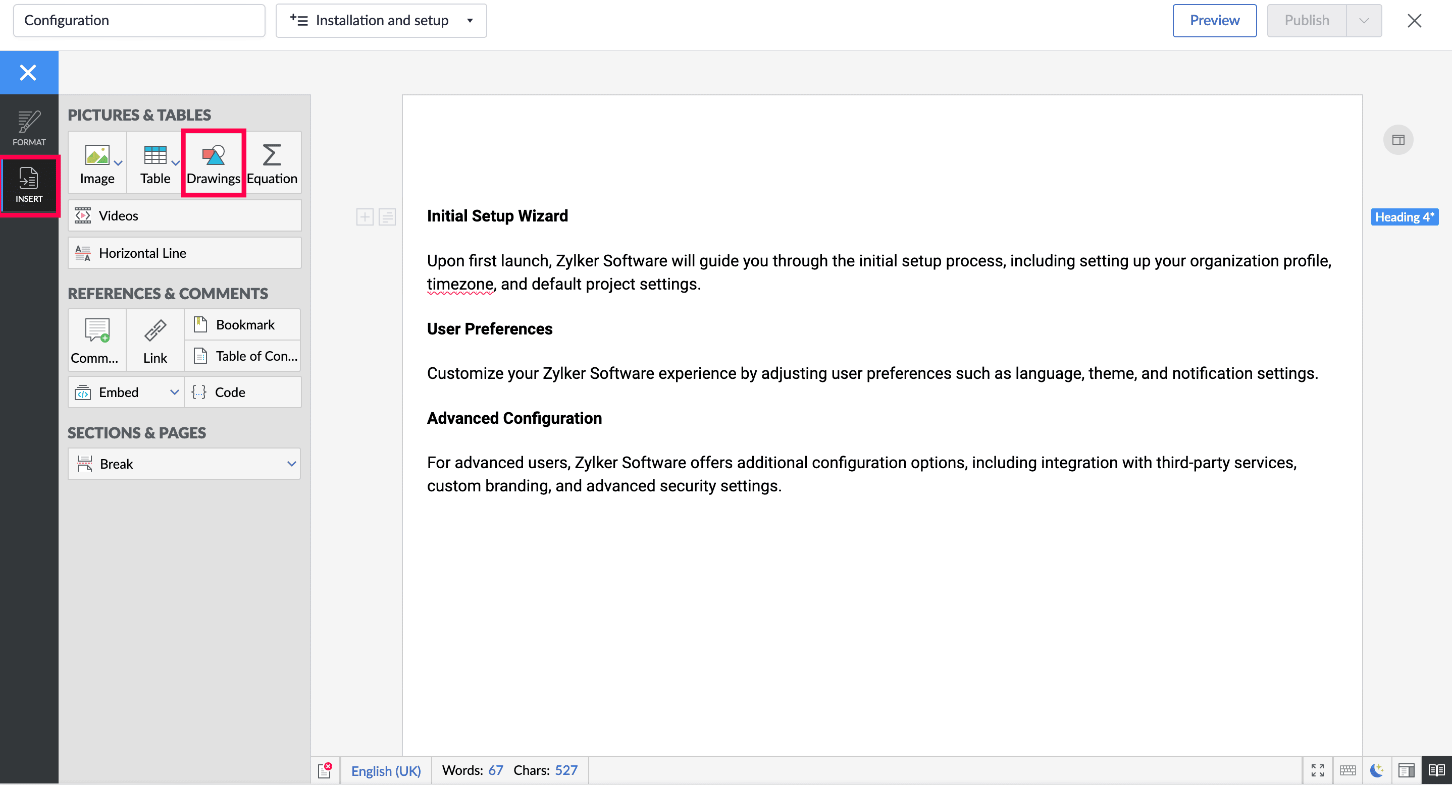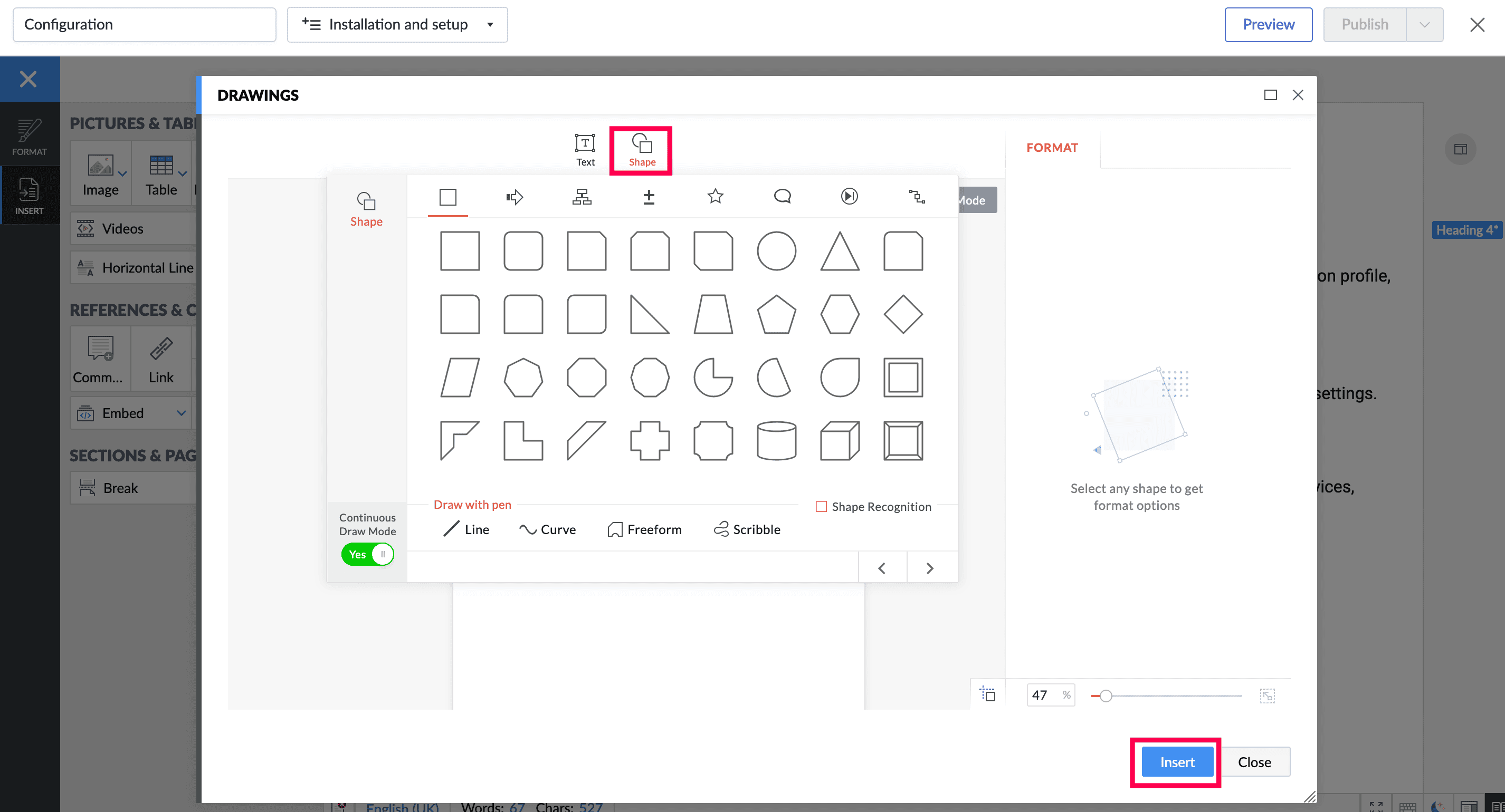 Click Edit Drawing, you can make the necessary changes to the drawings and shapes you have already inserted.