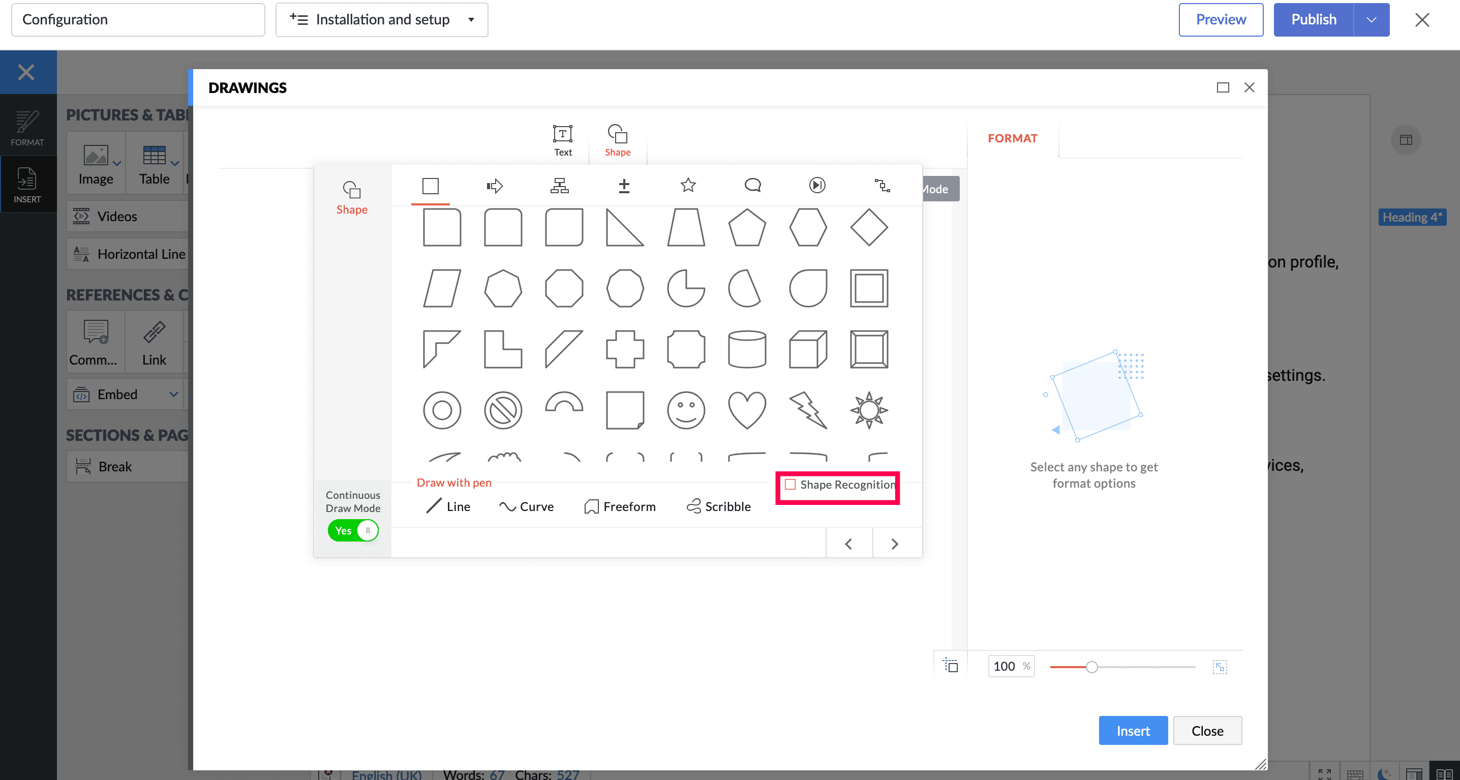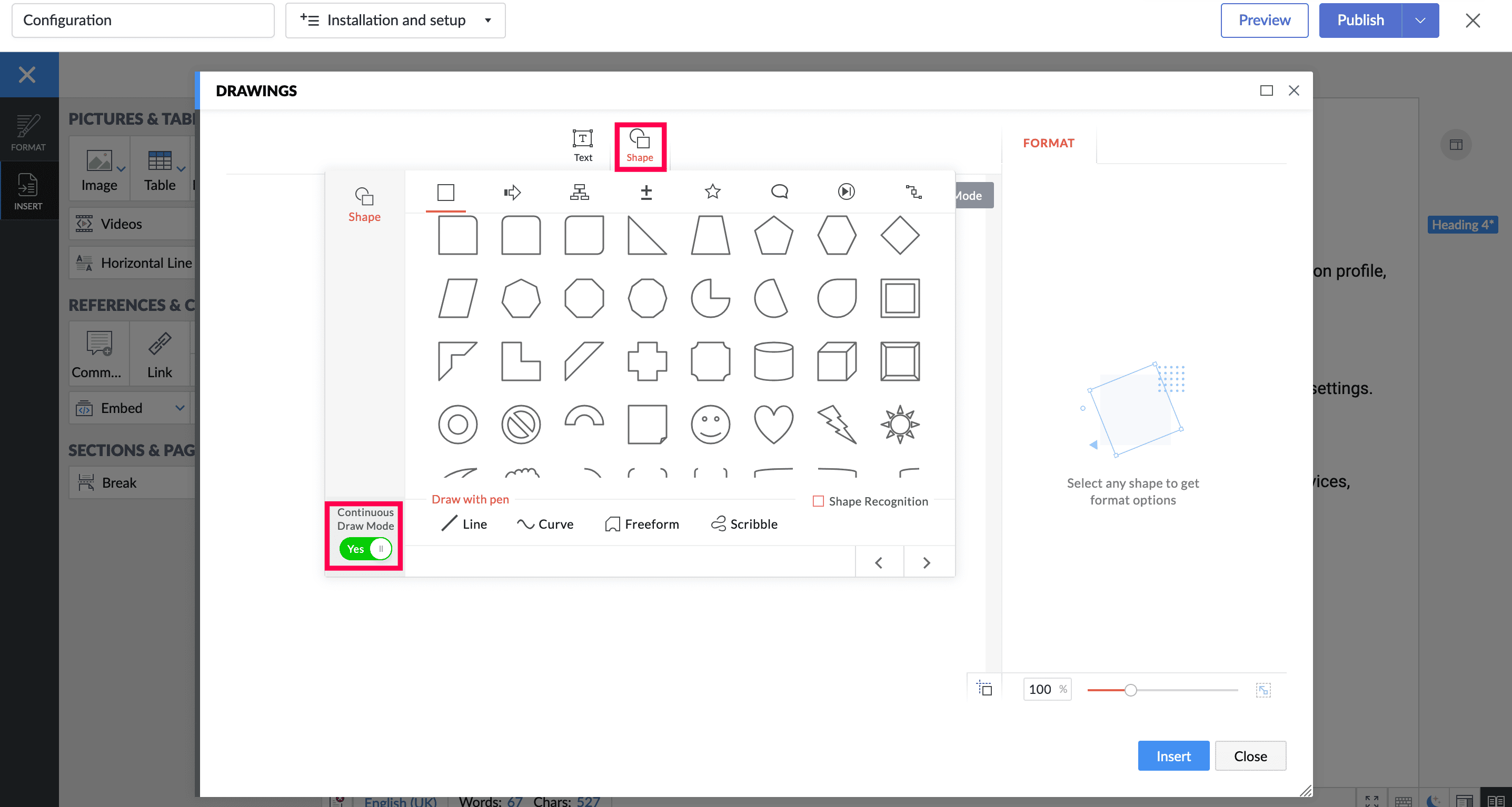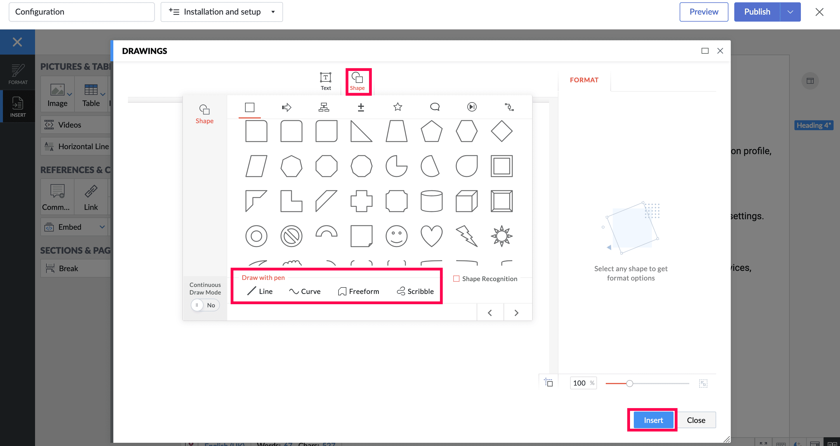 Include shapes and drawings, which can be useful for creating diagrams, flowcharts, or other visual content.