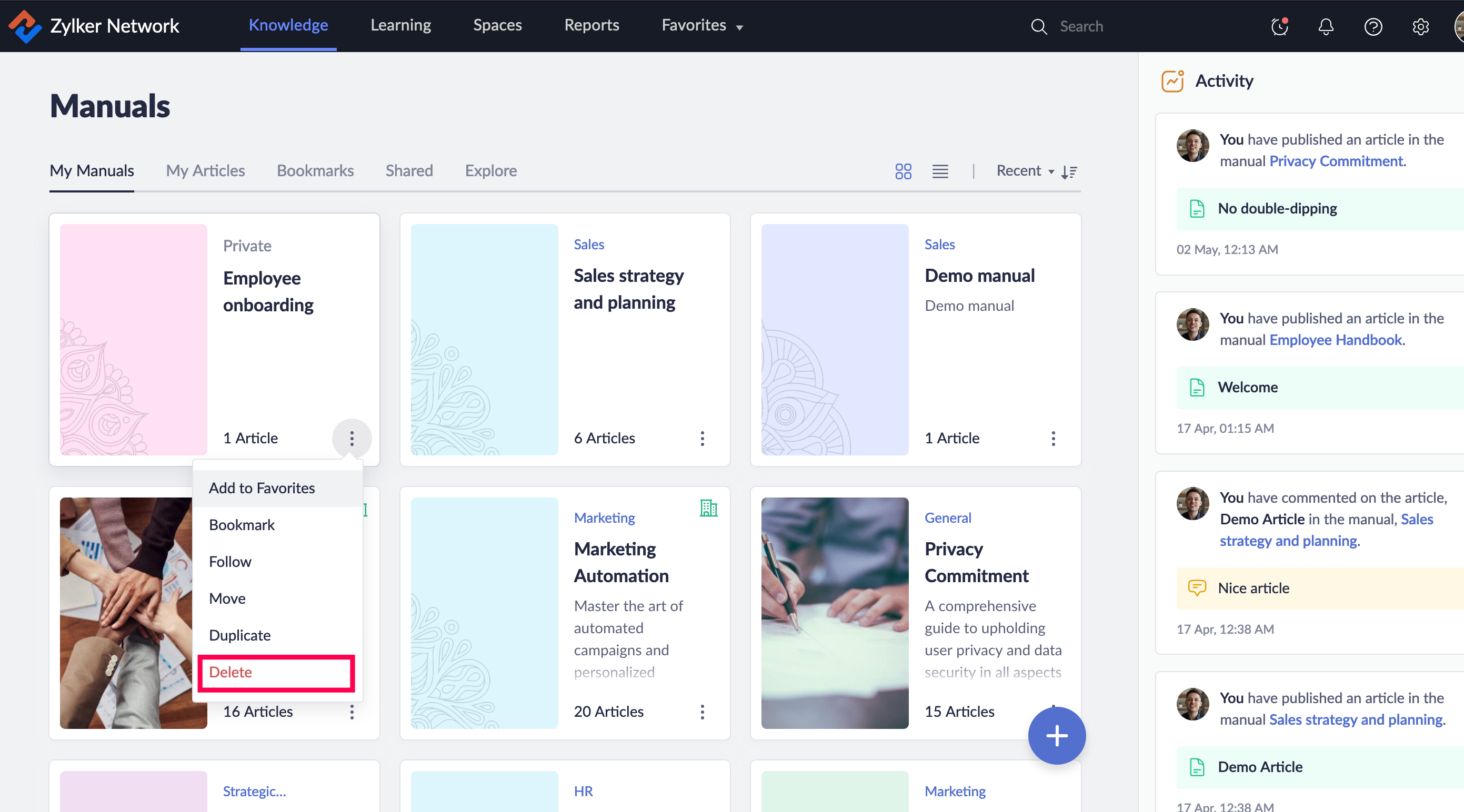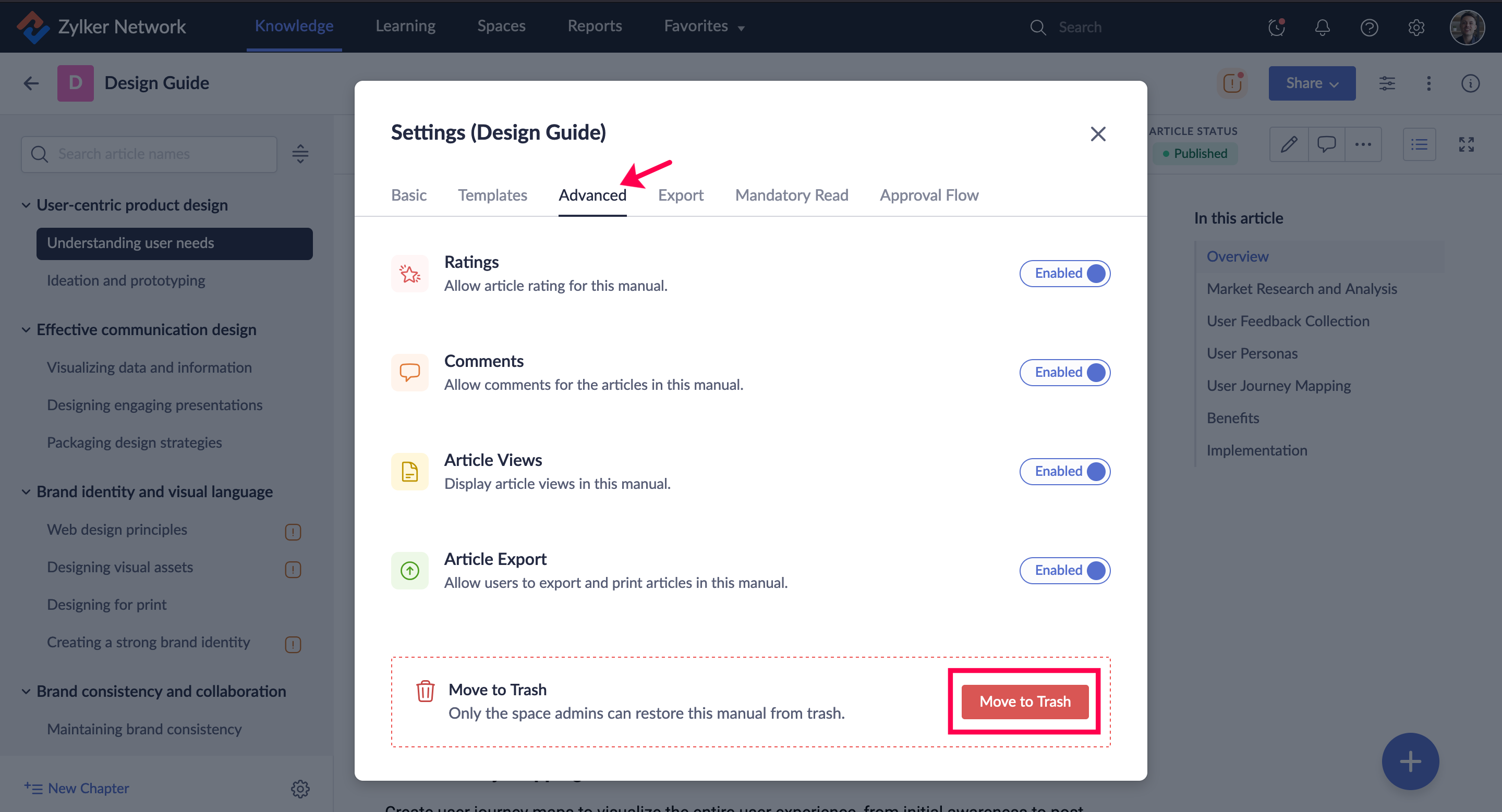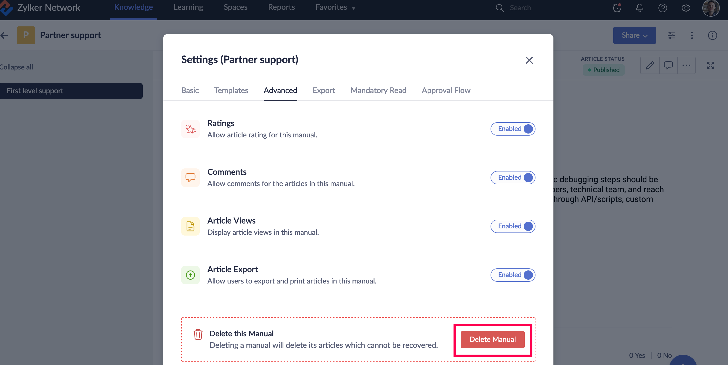 Private manuals cannot be moved to trash. They can only be deleted permanently. Once you delete a private manual, all its articles, and chapters will be permanently deleted.