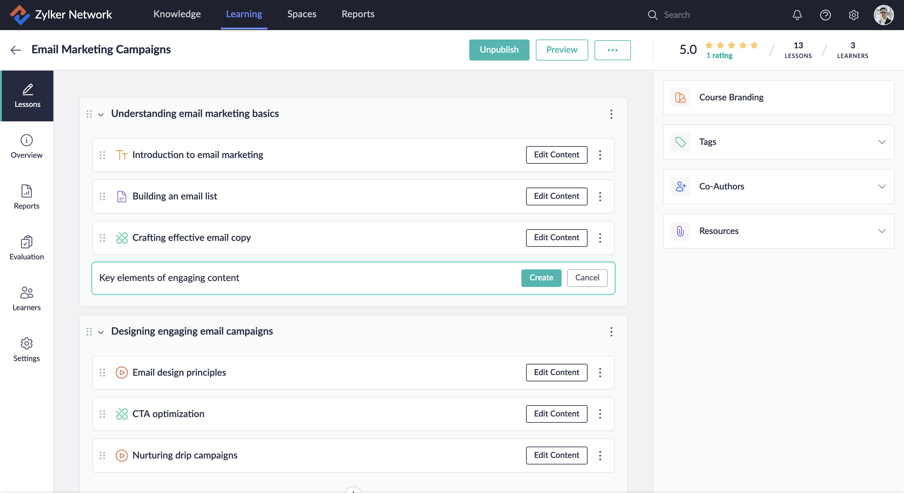 Divide your course into chapters with lessons that belong to a similar topic. Breaking your courses into chapters makes your courses well-structured and helps learners take their courses comfortably, finishing one chapter at a time. To create a ...