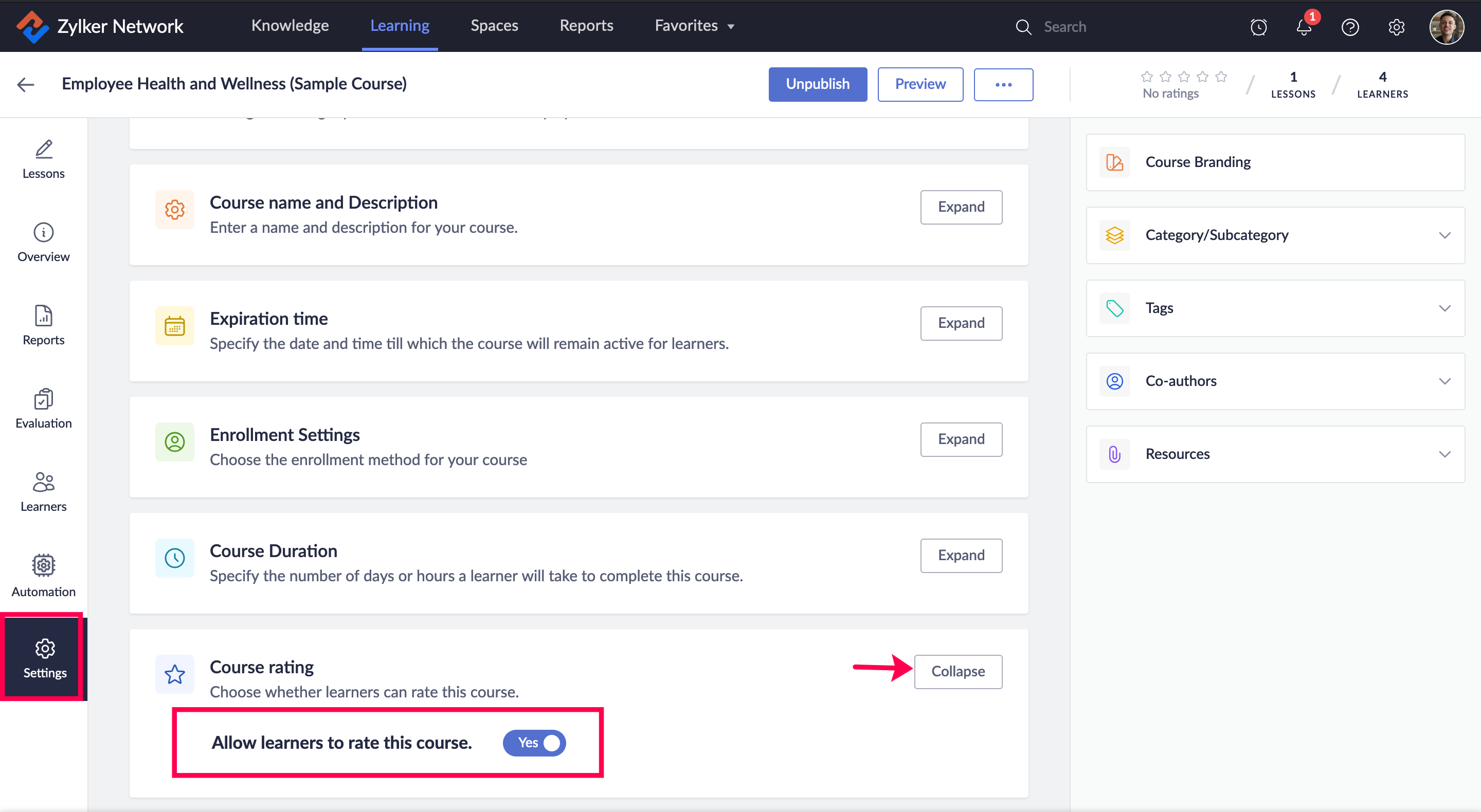 Determine if learners can mark the course as complete. If this is disabled, only the admins can mark the course as complete for the learners. To change course completion settings: Navigate to the course, then go to the Settings tab. Click the Expand ...