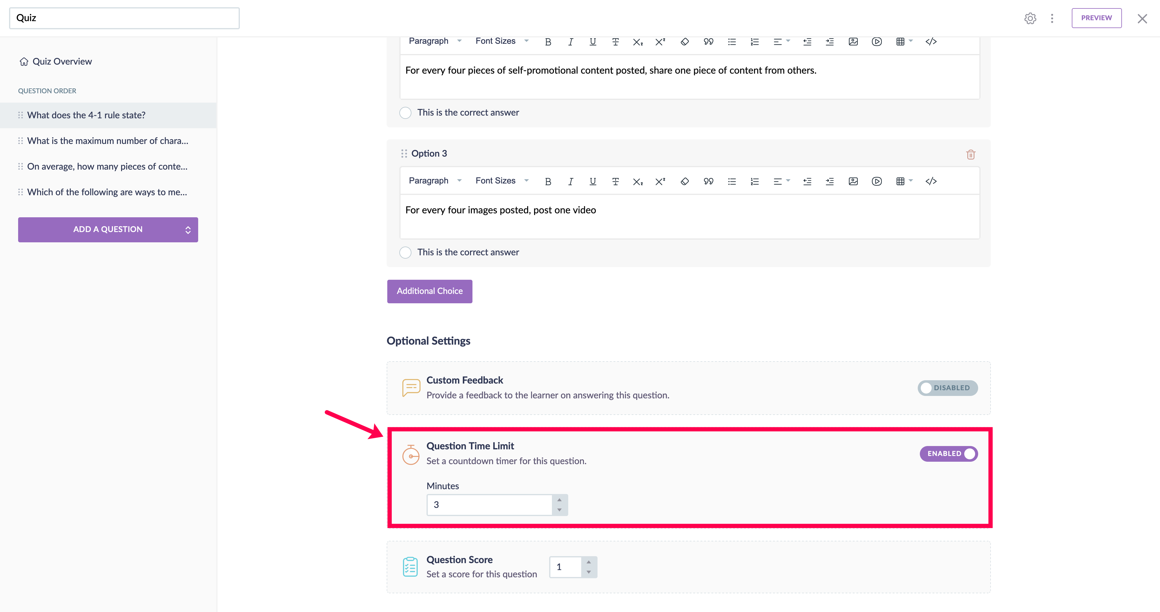 Once you've enabled question timer for the quiz, you can set the time for each question.