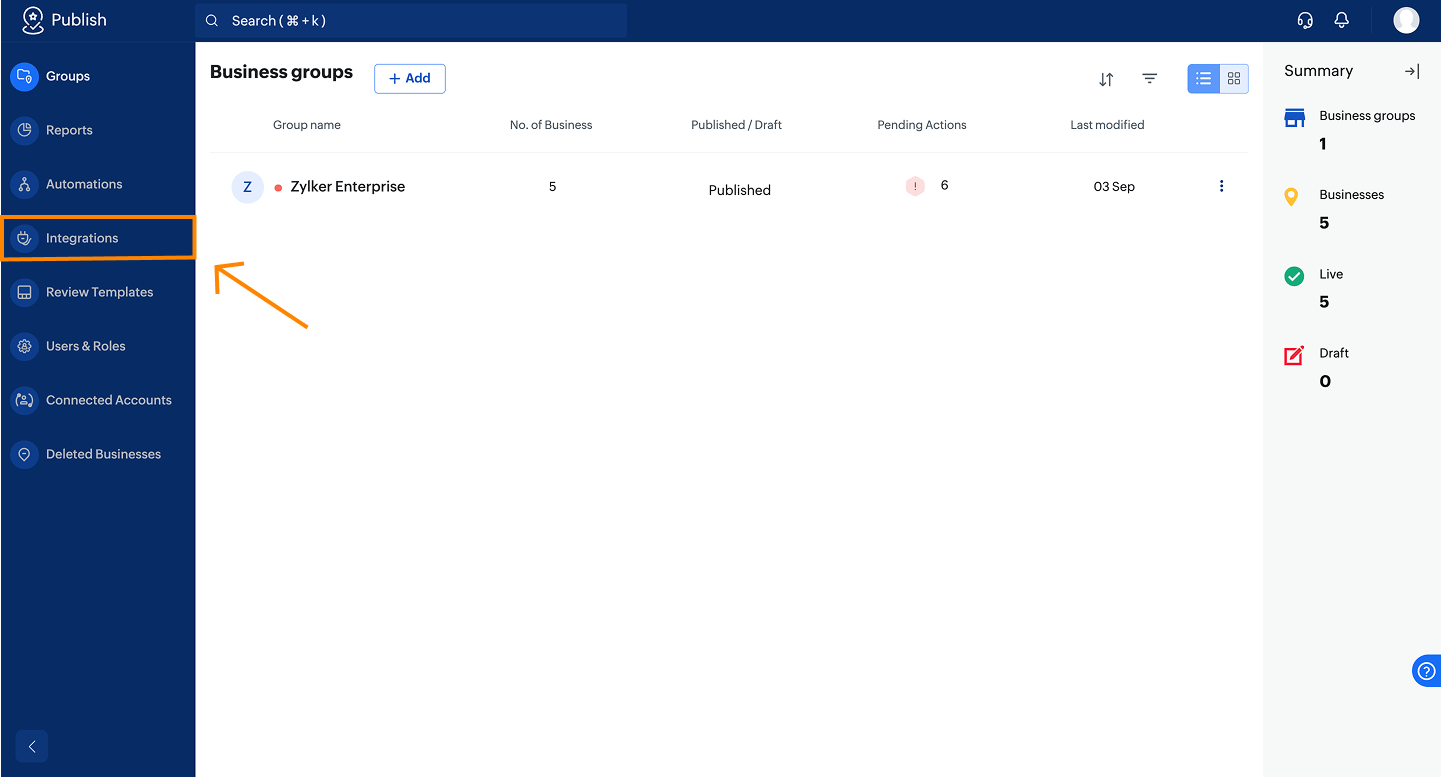 6. Businesses within the selected Business Group will be listed. Select the ones to set up automation.