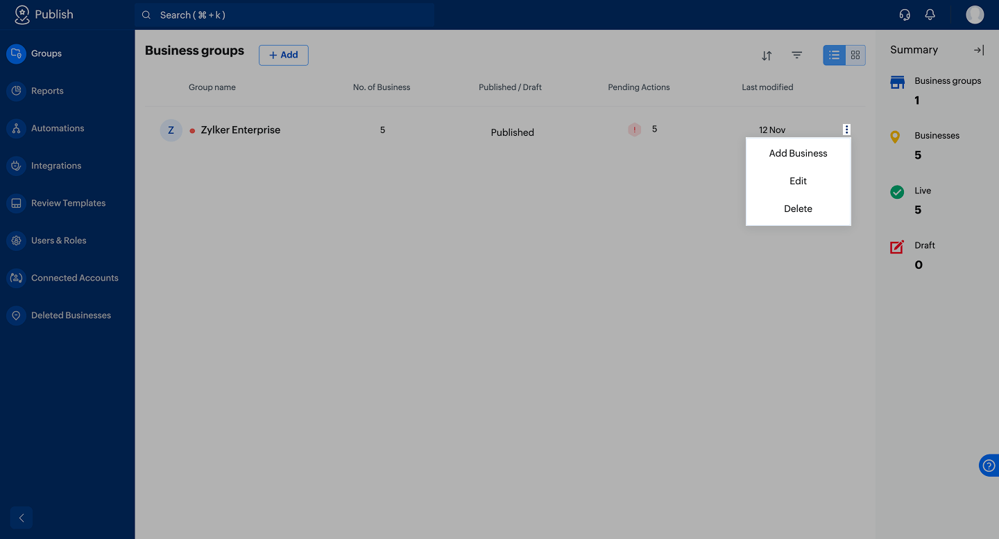 Important: Upon connecting your Google Business Profiles, pending actions (with the Learn how to use the best tools for sales force automation and better customer engagement from Zoho's implementation specialists.