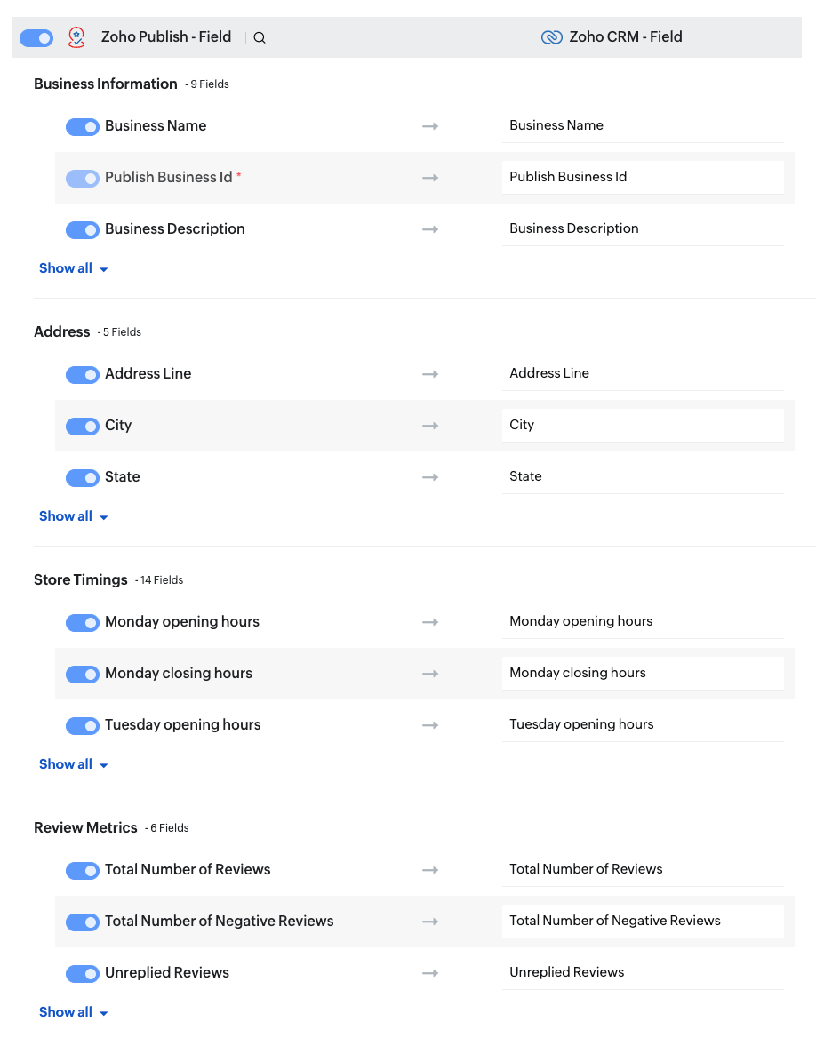 If you manage multiple business locations using Zoho CRM, integrating with Zoho Publish makes it easier to track their performance, monitor online reputation, and stay updated on business information changes.