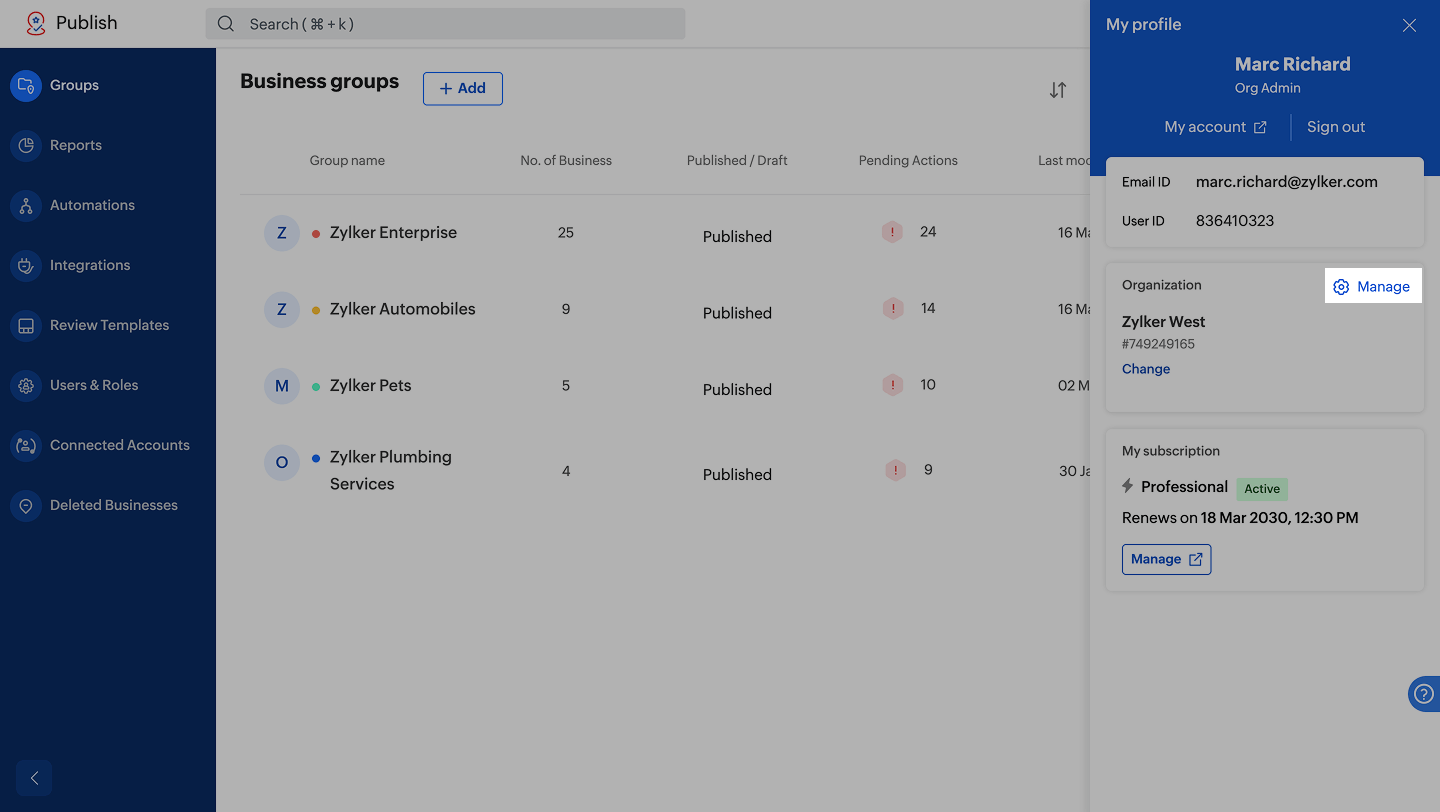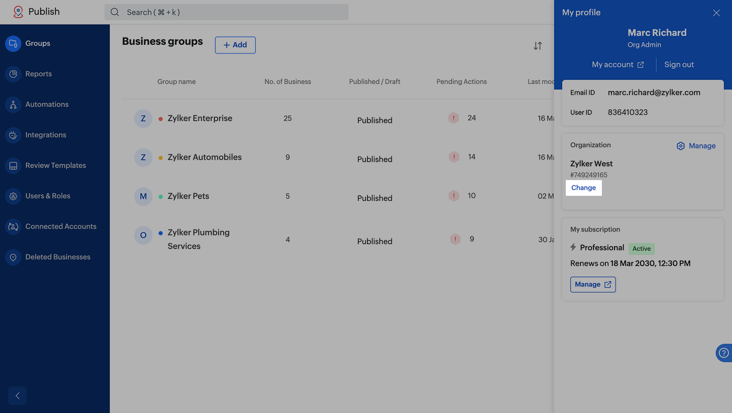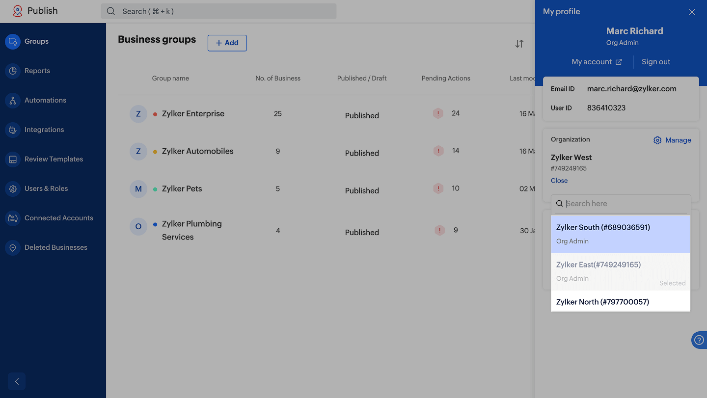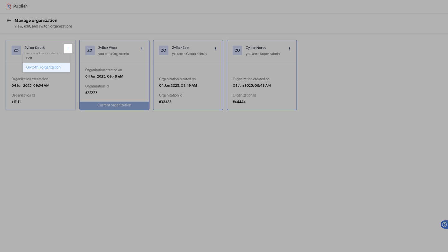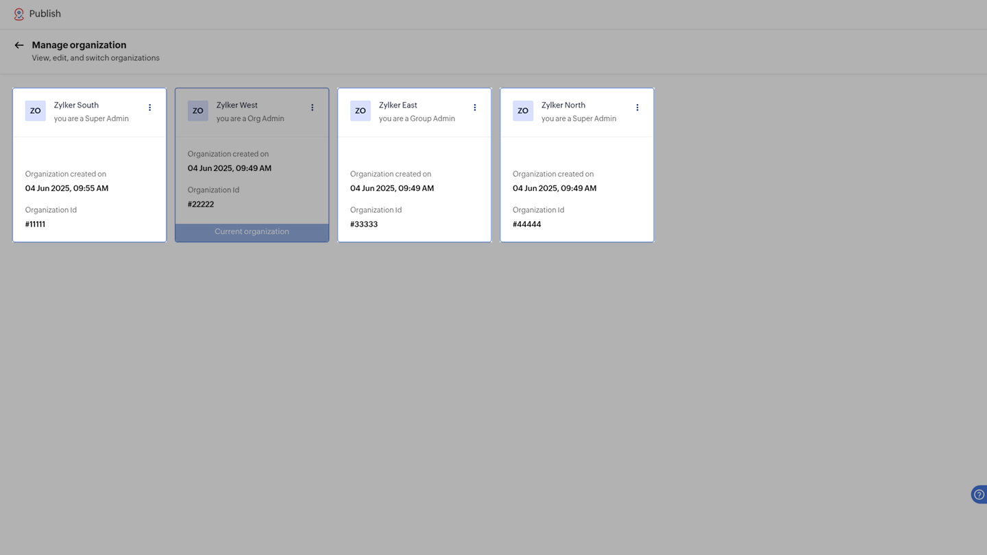 Note: You can use the search bar to find the organization quickly.Learn how to use the best tools for sales force automation and better customer engagement from Zoho's implementation specialists.