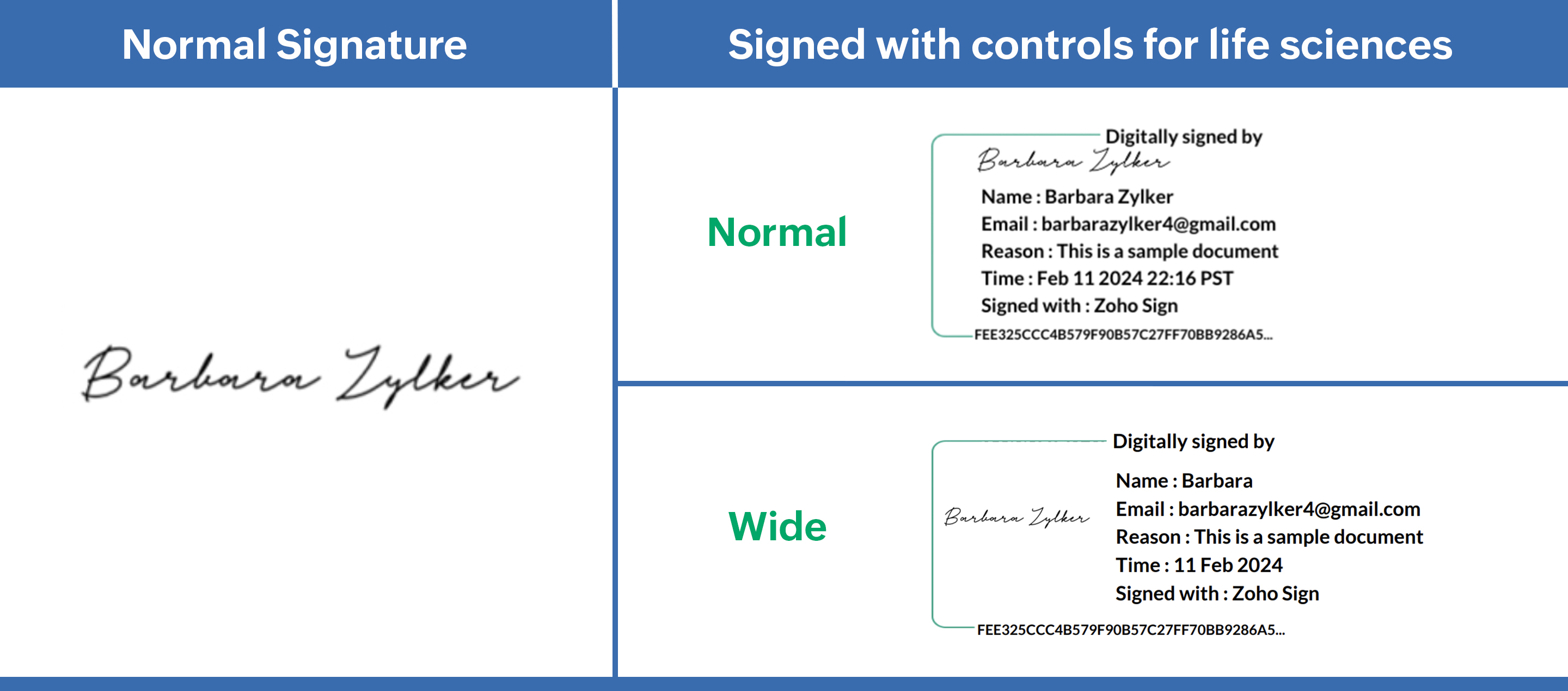 1. When controls for life science is enabled, by default, the visible signature gets enabled and the normal signature option is selected.