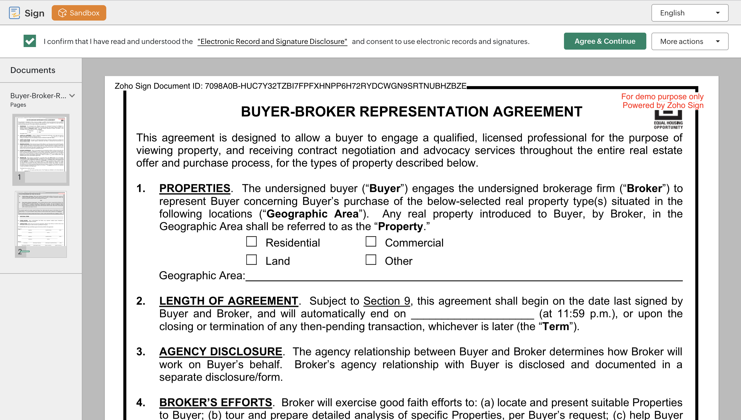 - A Sandbox environment can be used for testing for a maximum period of two months. Please contact support@zohosign.com if an extension is required.