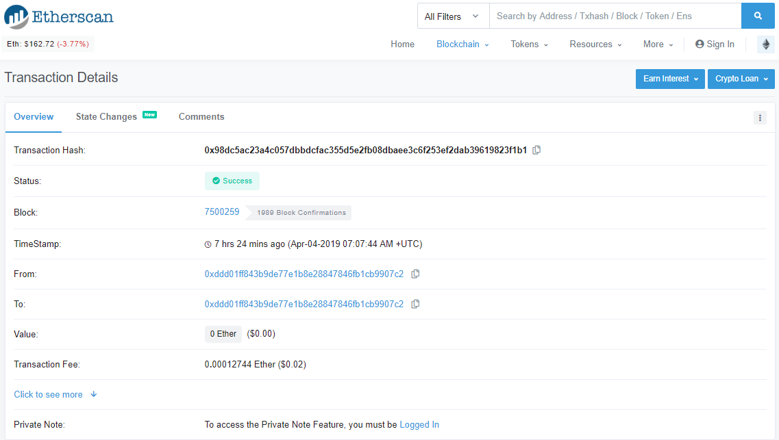 - For further verification, click the link icon in the transaction details box. This will take you to the Transaction Details page of the associated transaction on the Ethereum Blockchain Explorer website.