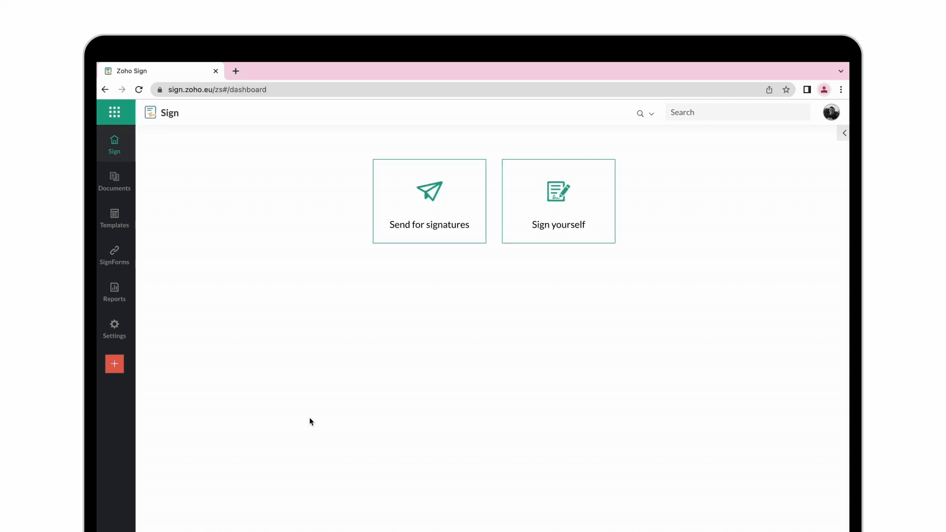 - From your Zoho Sign dashboard, click Send for Signatures.