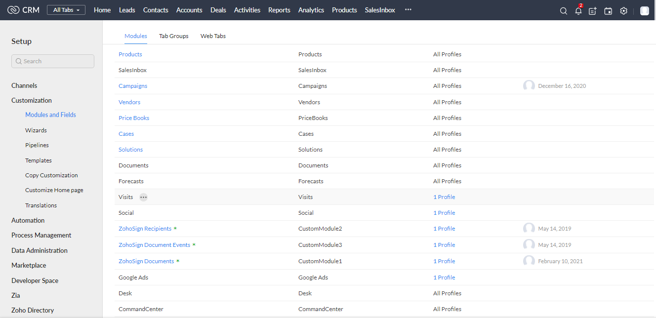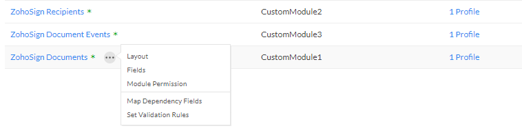one of the following three modules: Zoho Sign Recipeints, Zoho Sign