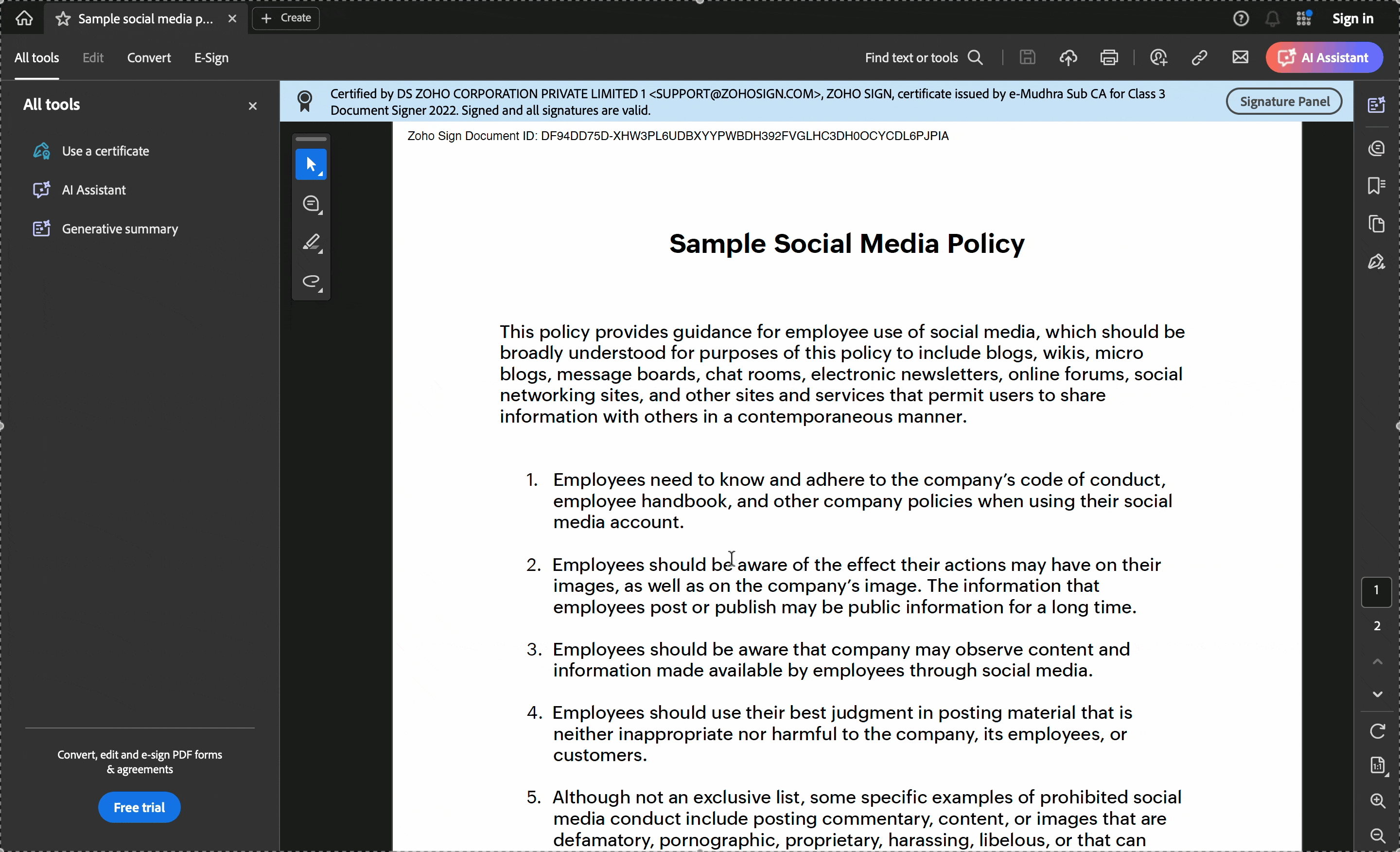 5. Another way to check the document for Aadhaar eSign is by checking the visible signature. However, this can only be checked if the document has a signature field.