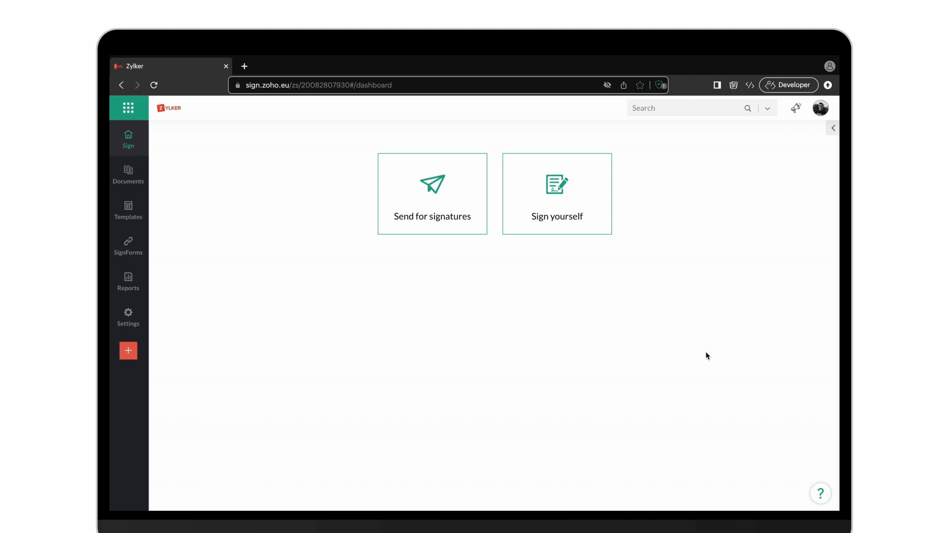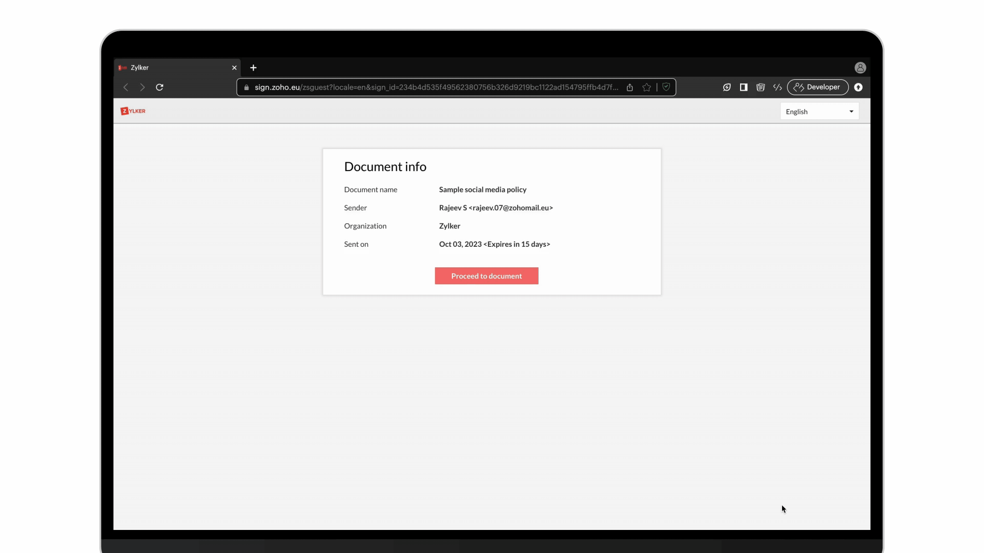 2. Only one document per signing request can be signed using this method and each signing activity will consume 18 Zoho Sign credits (1 Zoho Sign credit = €0.10).