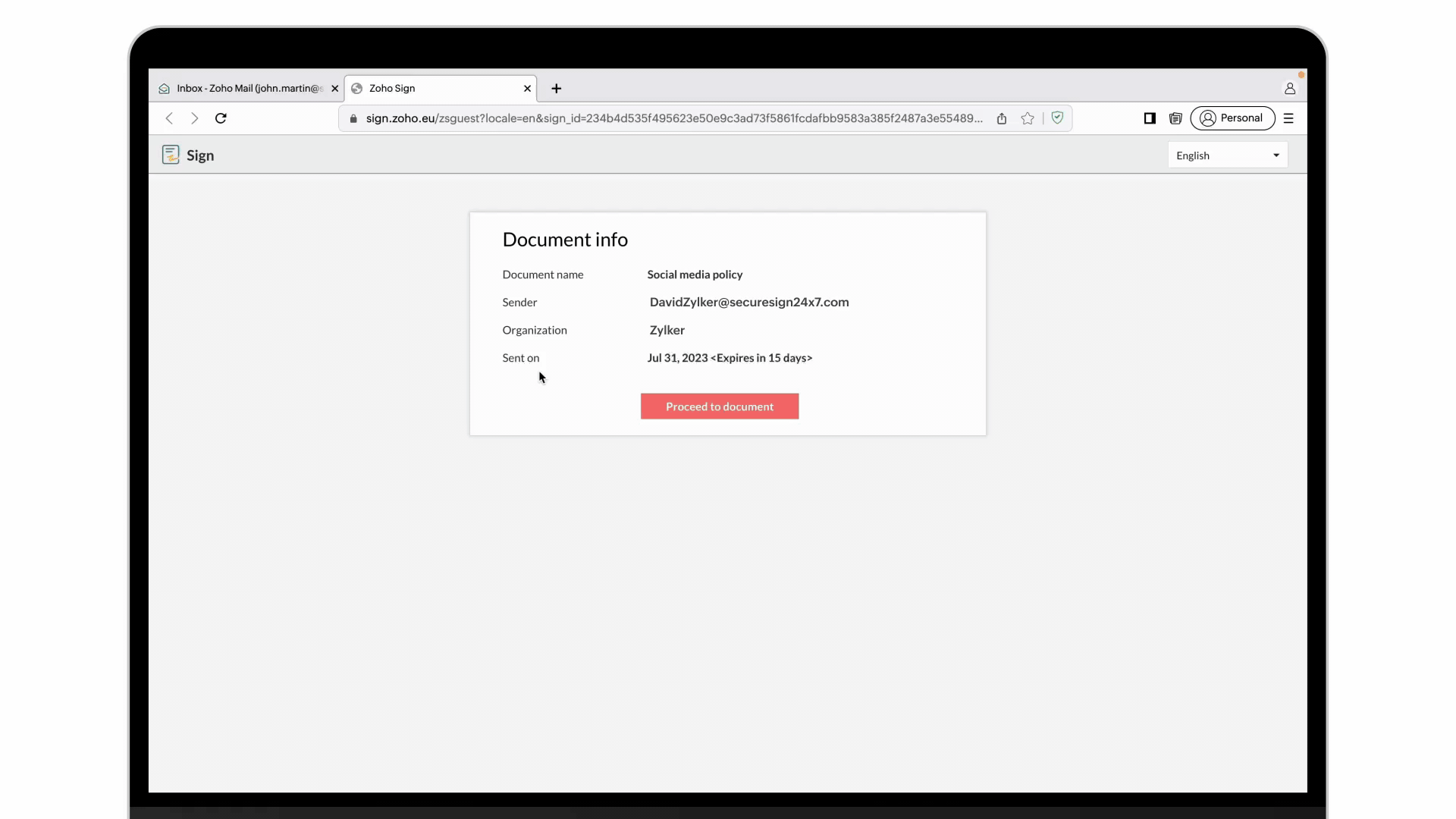 Once the signer receives a link to sign a document via Zoho Sign, they will: