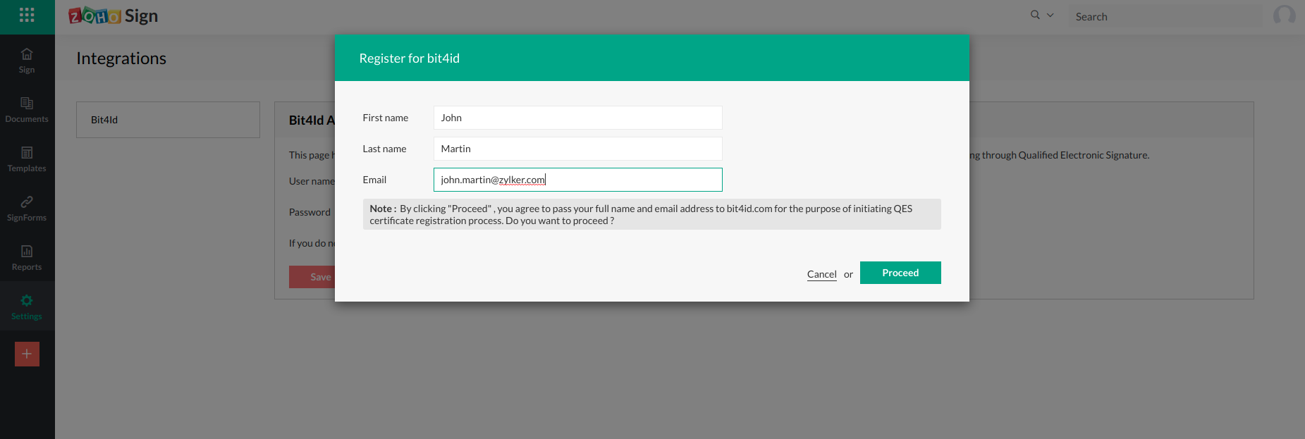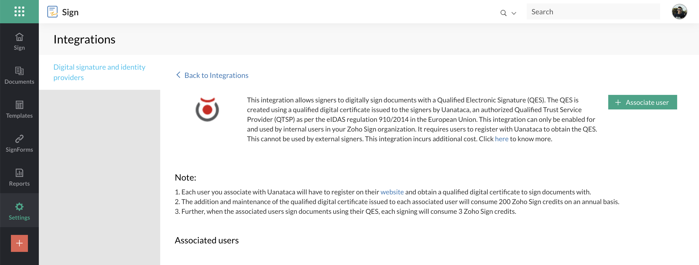 - The addition and maintenance of the qualified digital certificate issued to each associated user will consume 200 Zoho Sign credits on an annual basis.