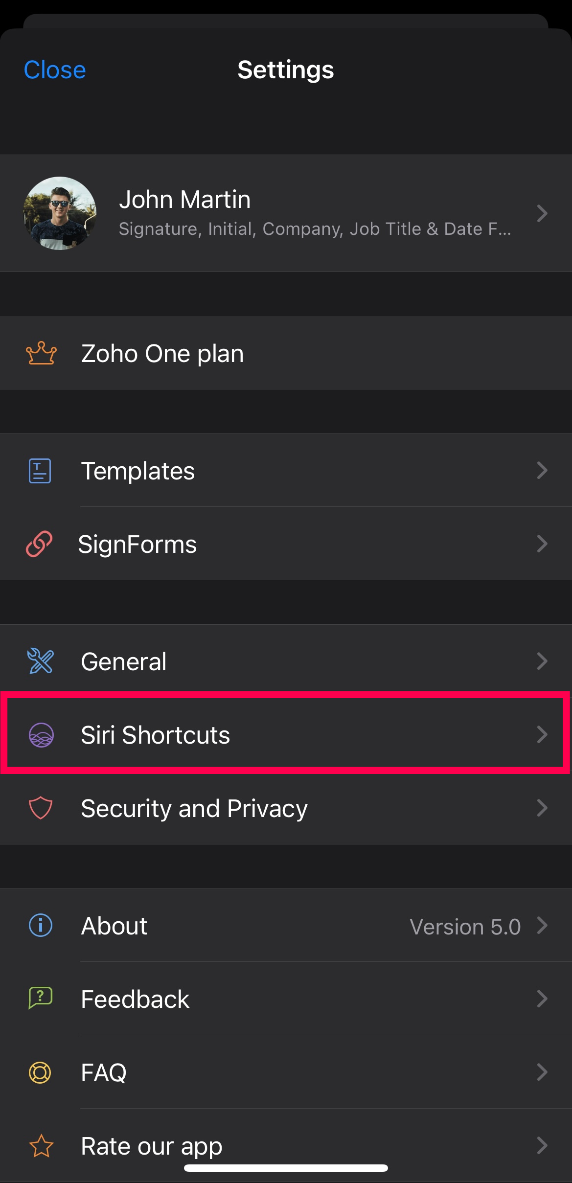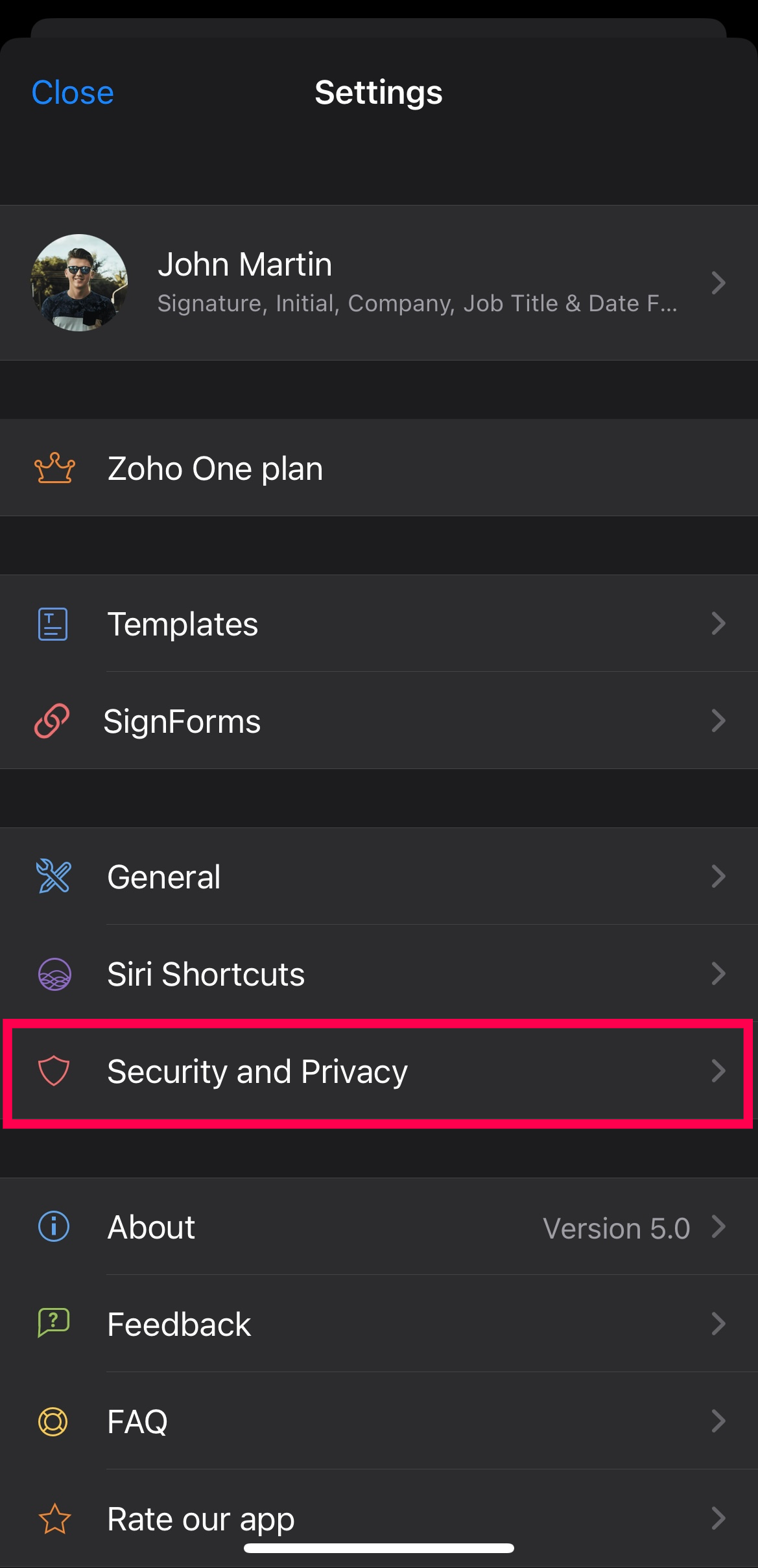- Allow Face ID to unlock - You can unlock the Zoho Sign app using your Face ID that you have already set up on your iOS device.