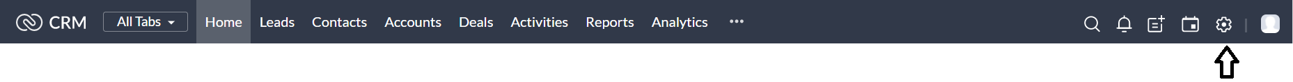 1. Visit Zoho CRM and click the Settings icon at the top-right corner.