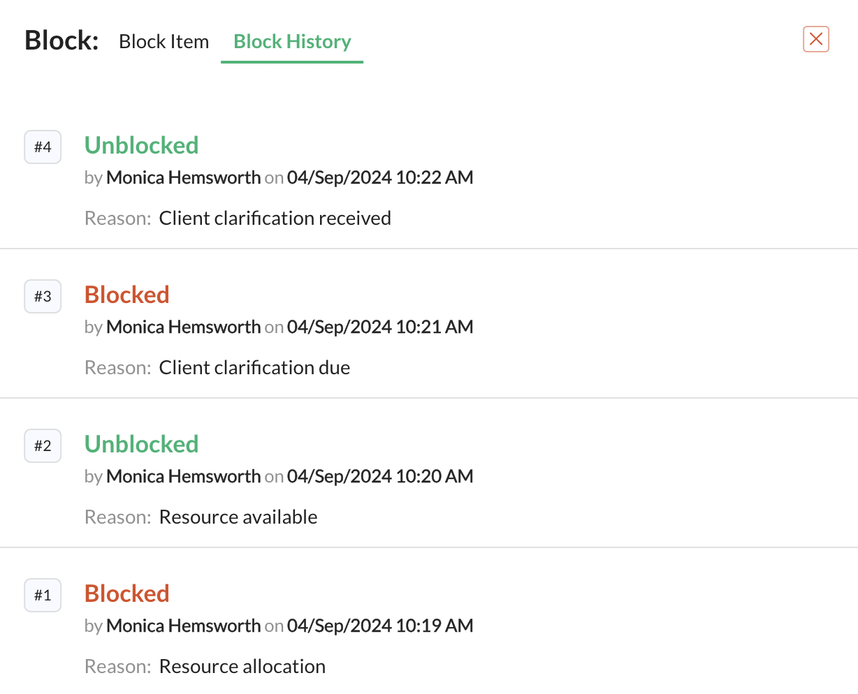 3. Admin user, sprint owner, project owner, and workspace owner can unblock the item