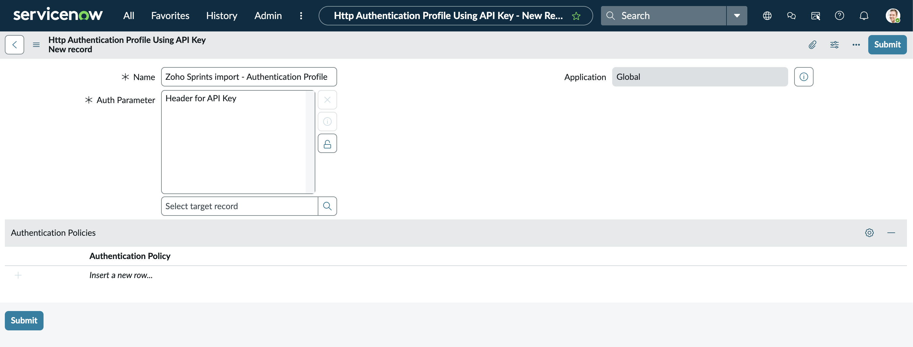 Use the form menu and choose Submit.