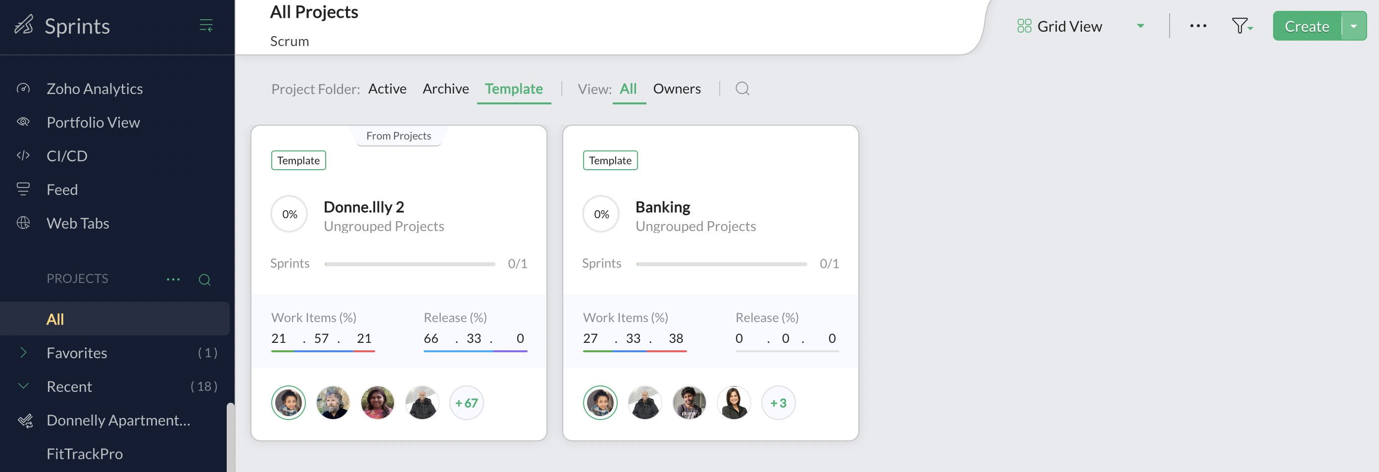 In Zoho Sprints, project templates are incorporated to eliminate the need for repetitive effort. Organizations sometimes perform a predefined set of operations and workflows that will remain unchanged. Retracing those steps and redefining those operations and workflows for every project might be cumbersome. Creating a template will help create a master copy of your standard process and this can be used as the basis of your future projects. This saves time and effort and enables you to create a solid process and structure for your projects. Your team can invest the time and effort in handling tasks and generating output.