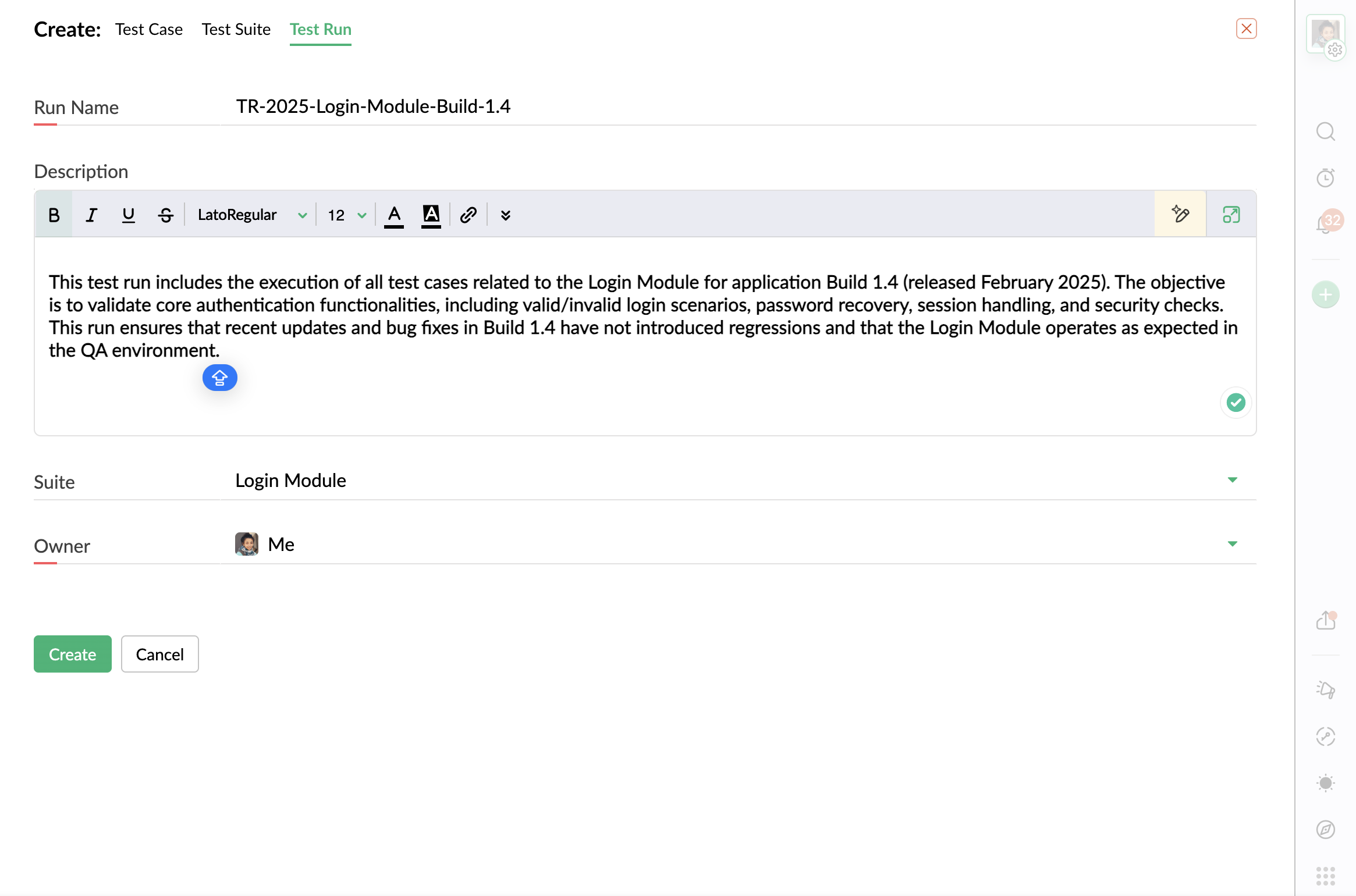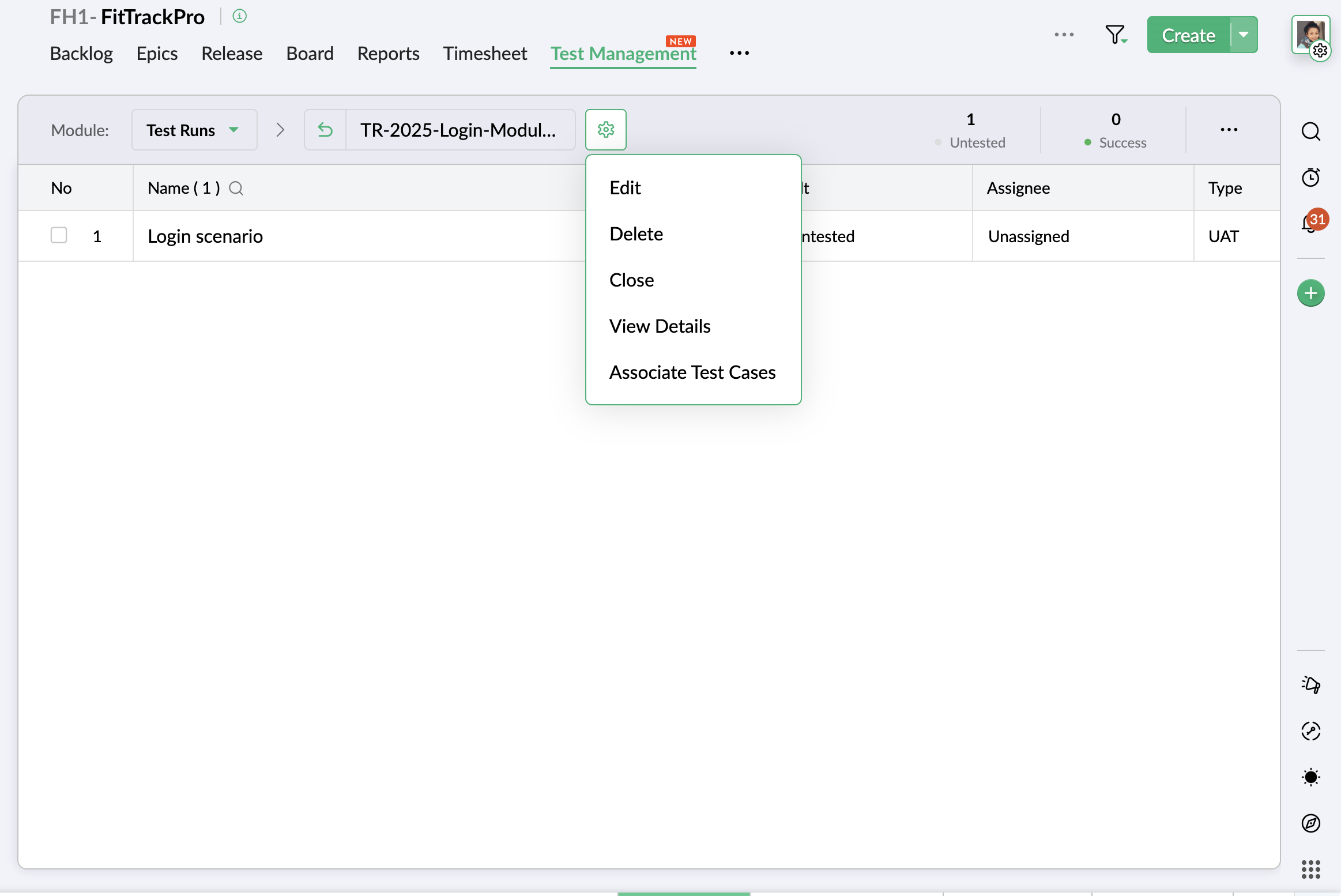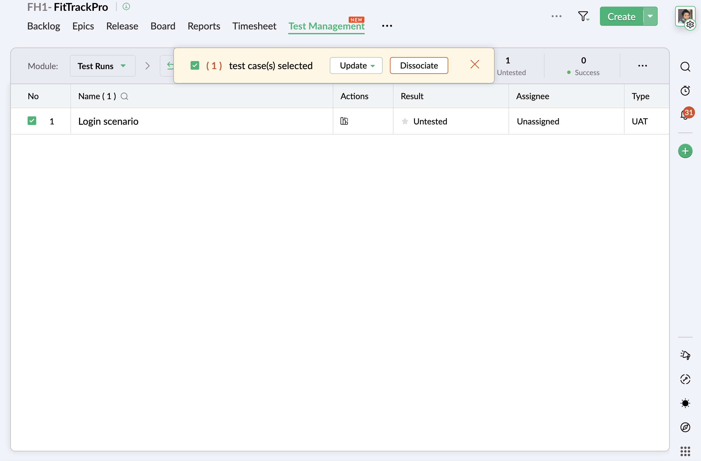Select the test cases to be added to the test run. - Click Create & Associate.
