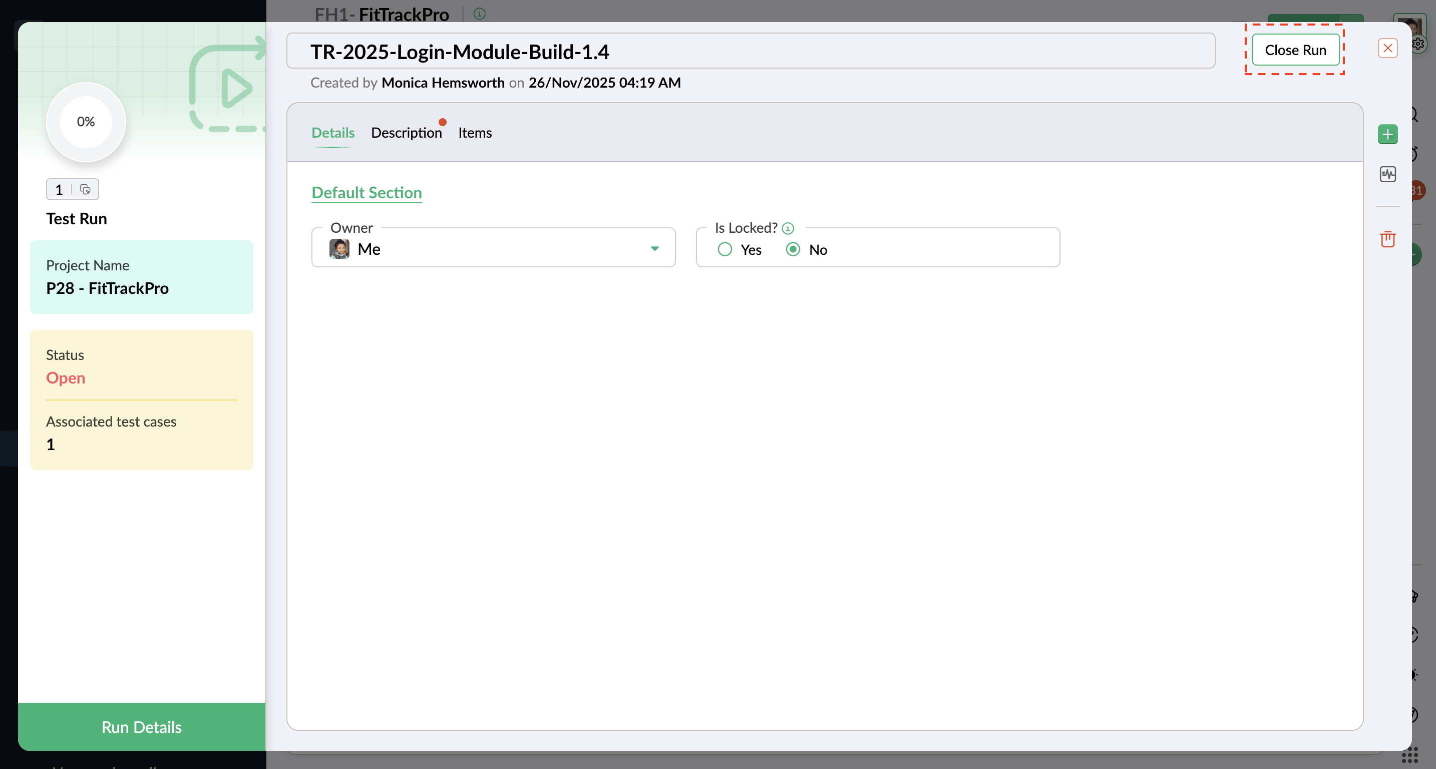 - You wont be able to make any changes to the test cases associated in the test run once the test run is closed.