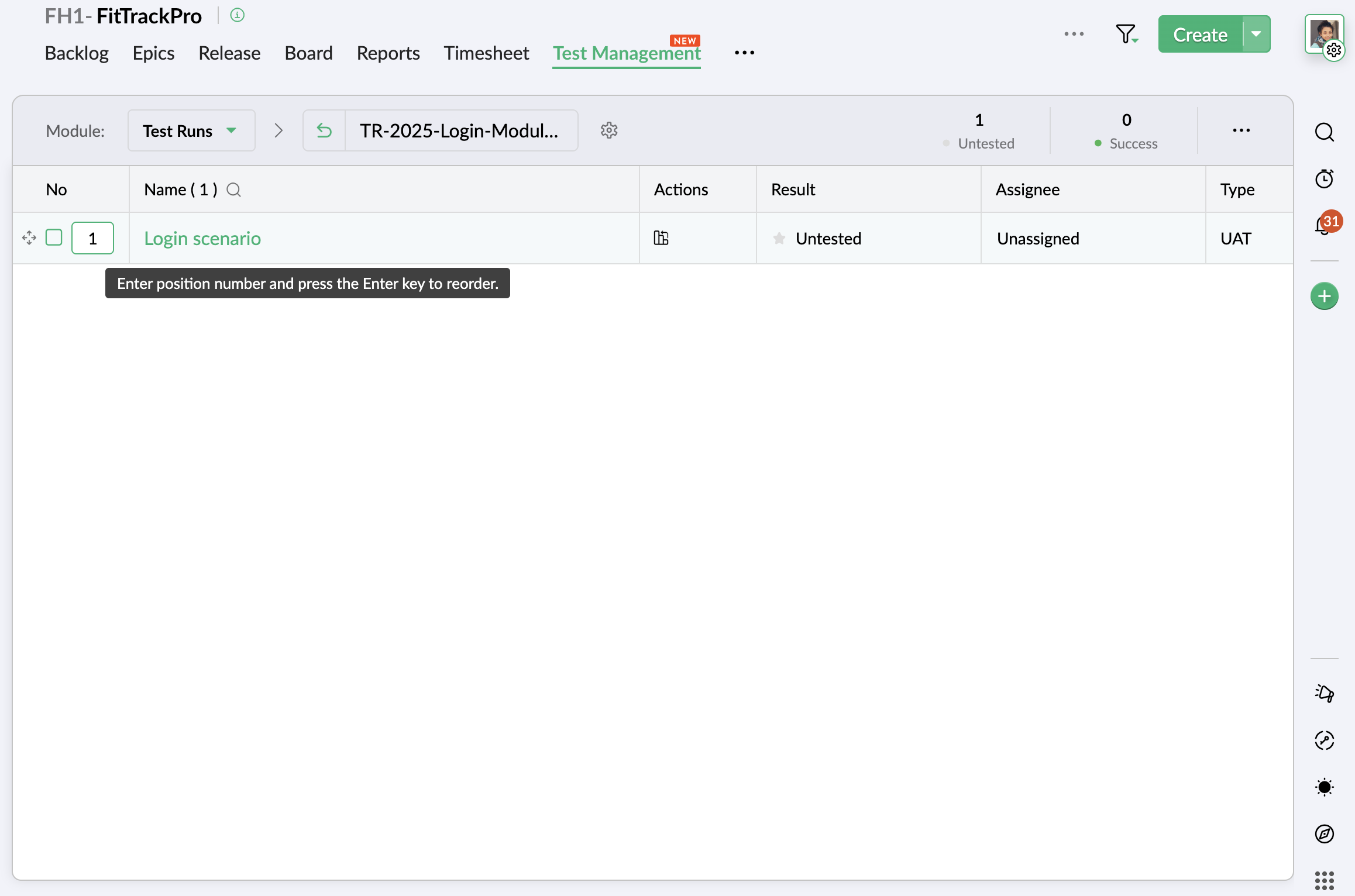 In the Test Run module, you can view the results of the test cases executed so far. You can see the number of test cases listed under each test result.