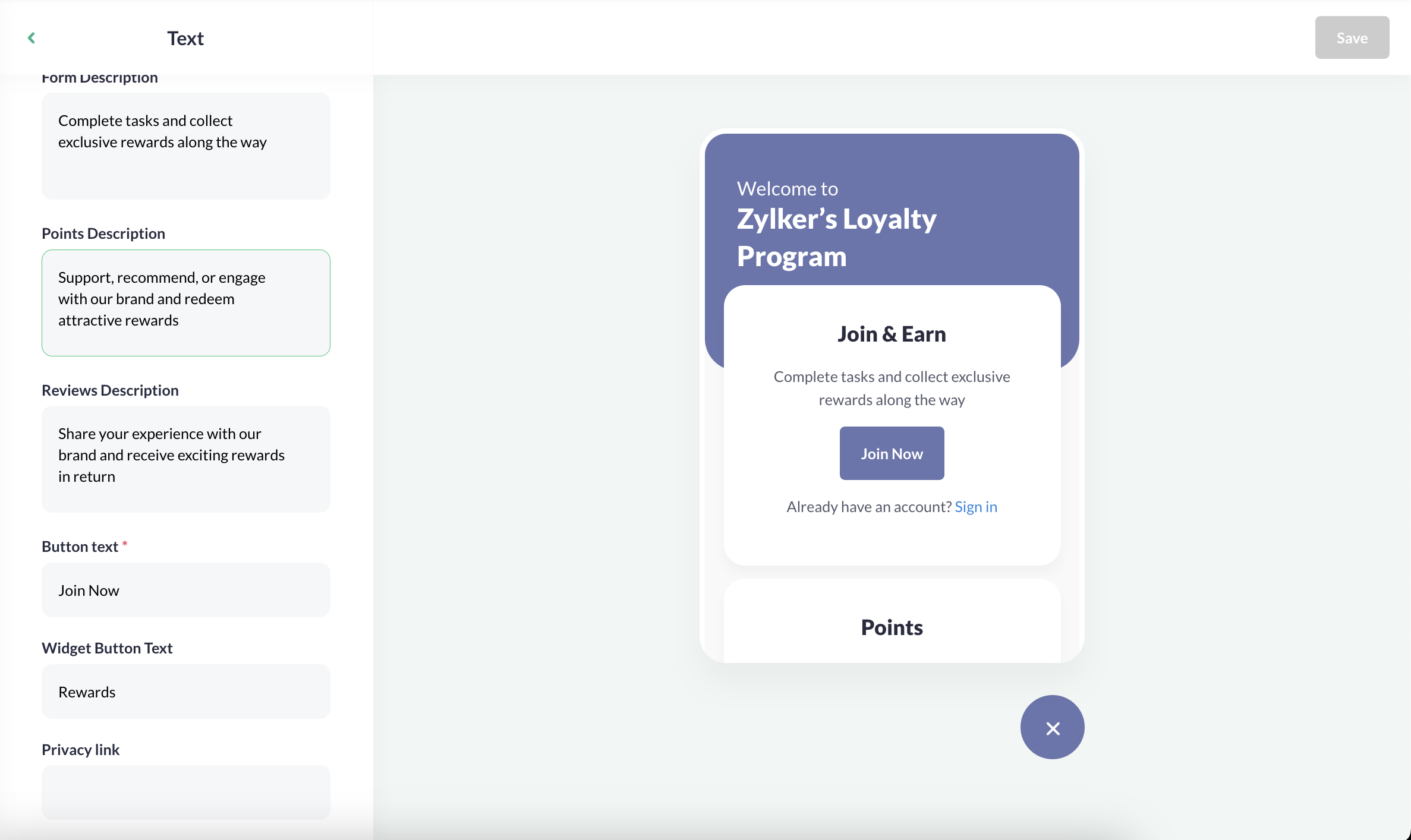 Delete the default text and click Save.