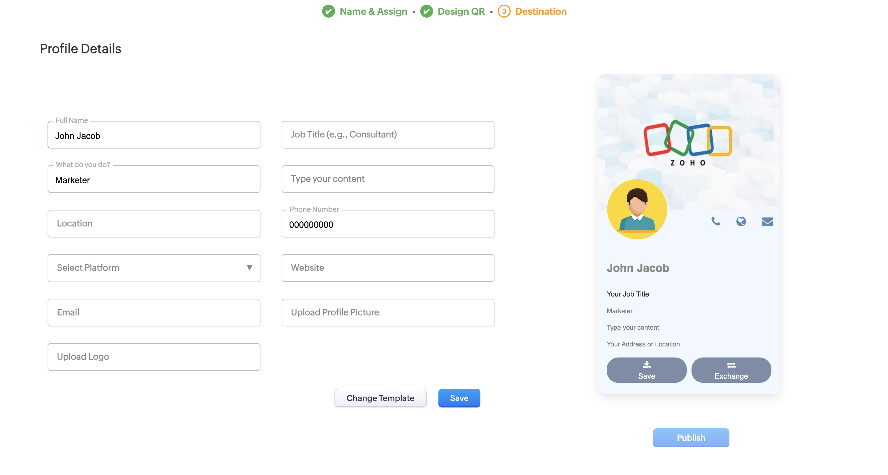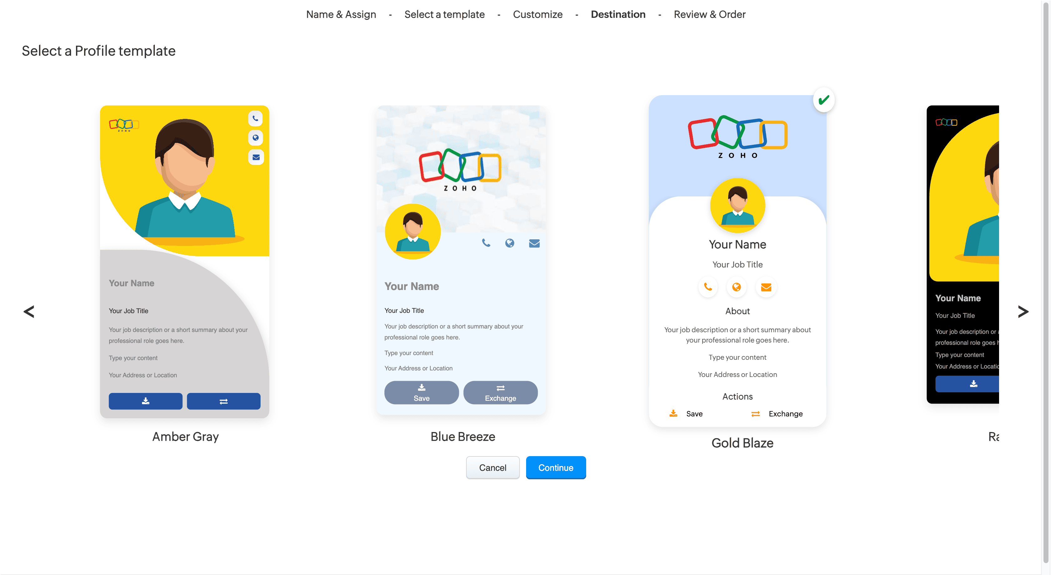 Choose a profile template and enter your contact information