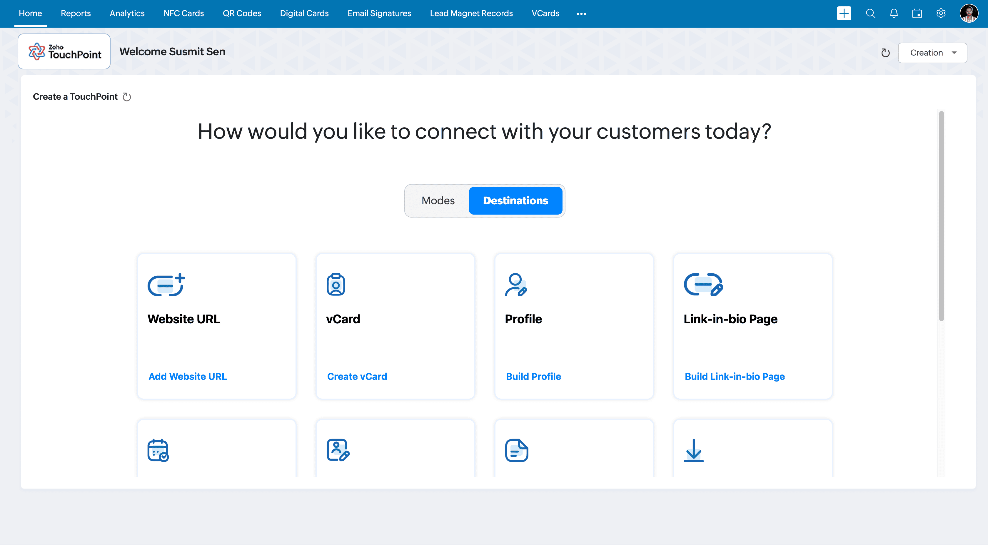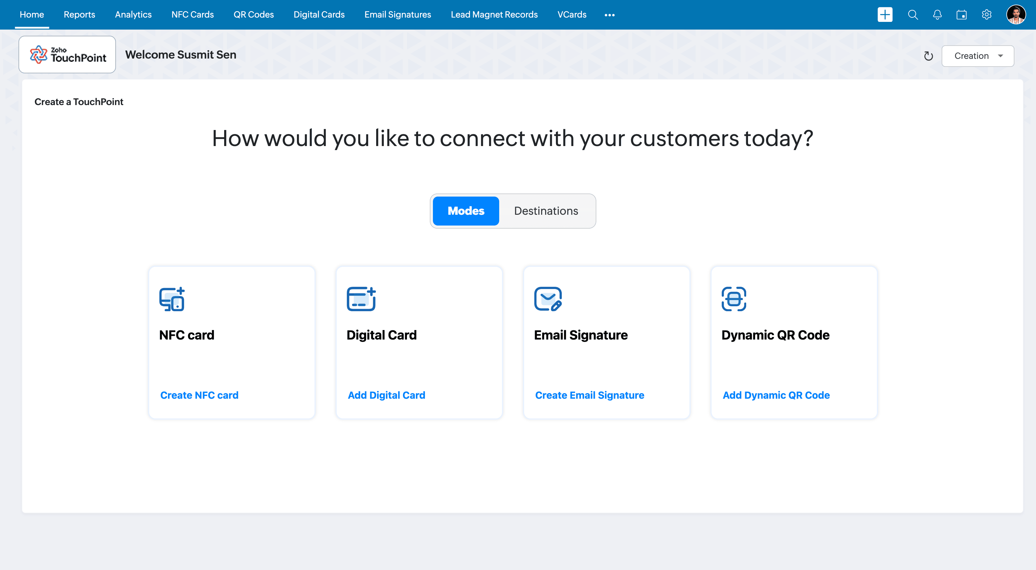 NFC cards offer a modern and contactless way to share your information and generate leads. By tapping an NFC-enabled phone on your card or scanning the QR code printed on it, your prospects can instantly access the information you choose to share. Zoho TouchPoint allows you to design, configure, manage, and track these cards with ease.