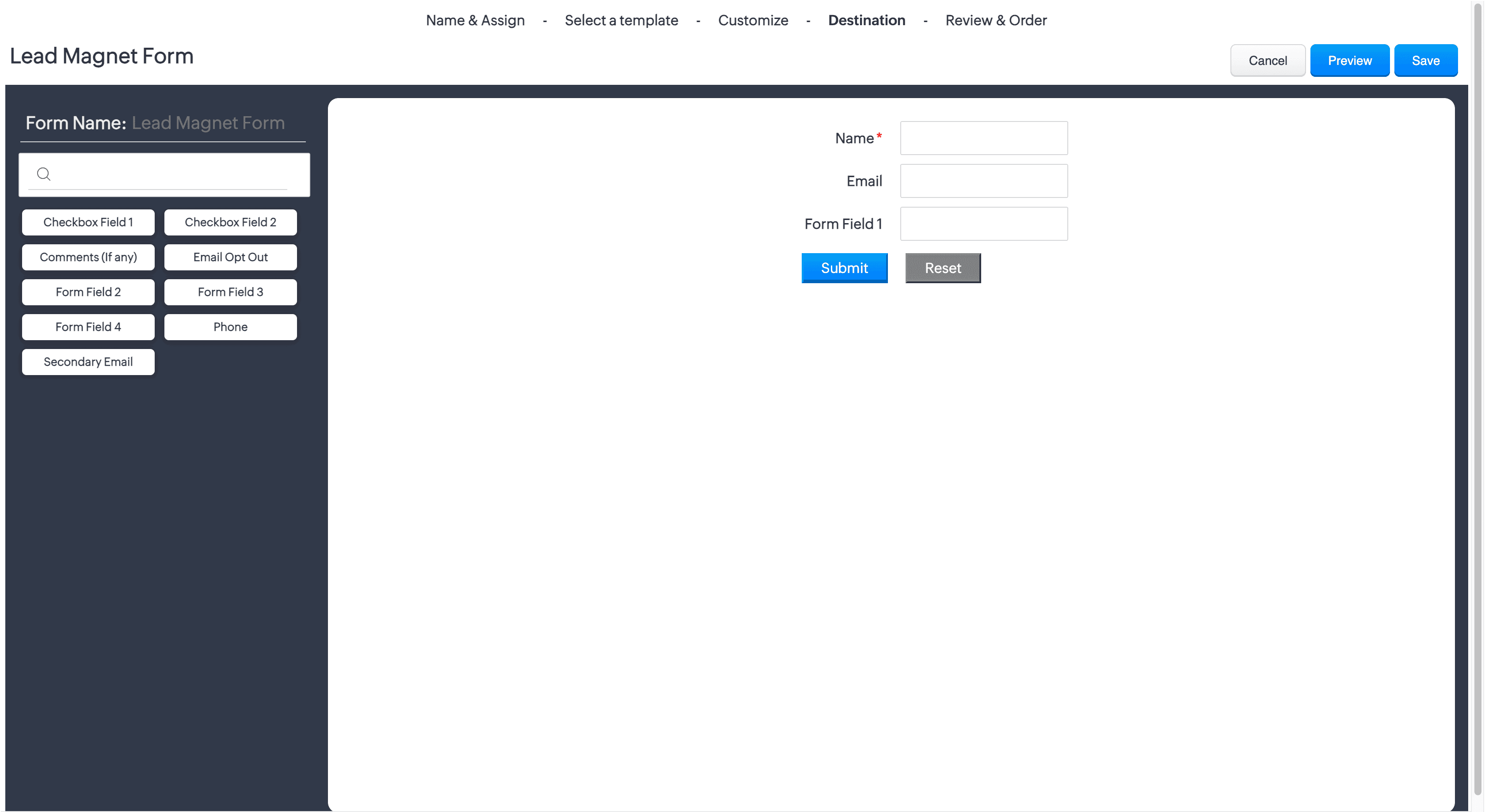Select Lead Magnet Form and click Build Lead Magnet Form