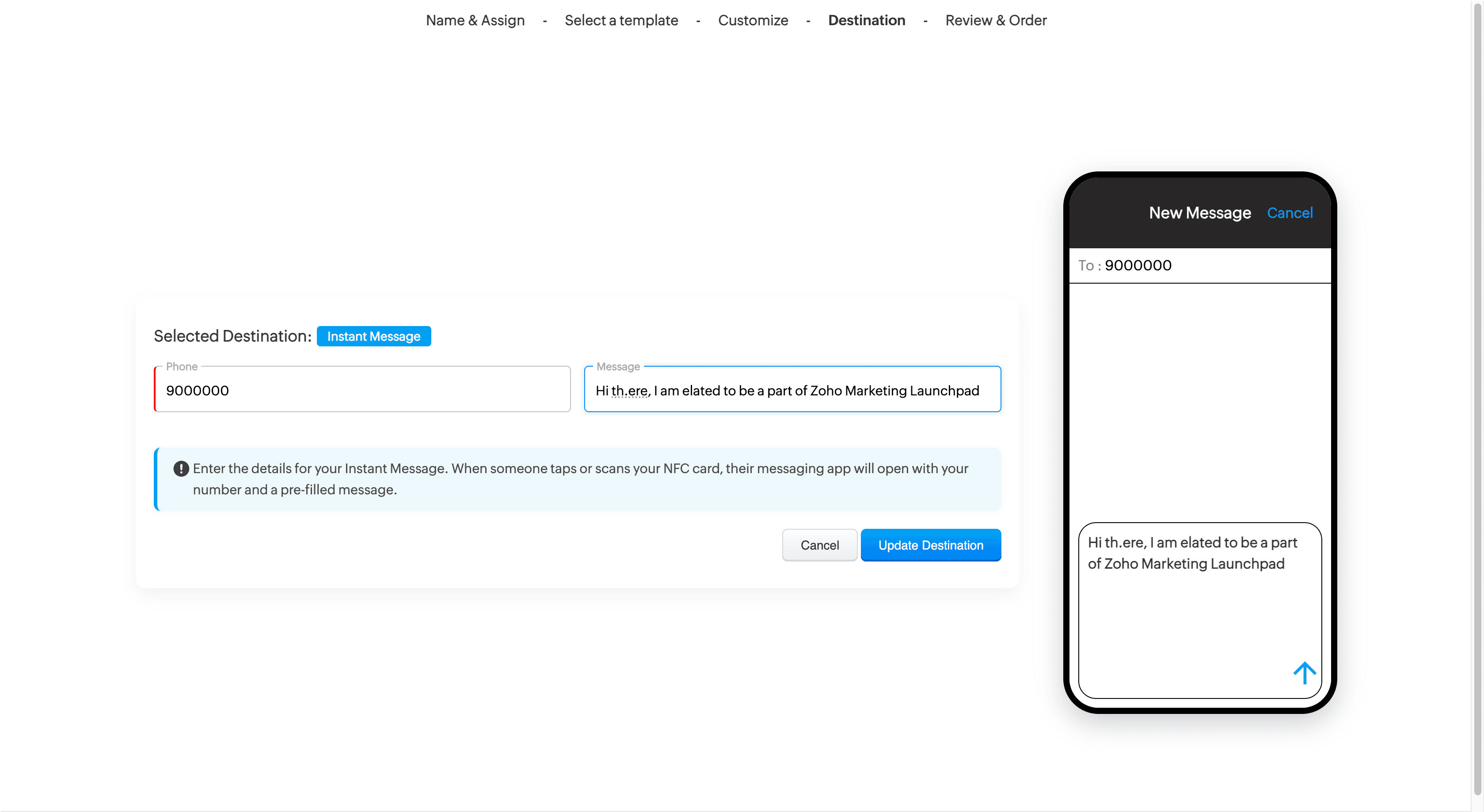 Enter your phone number and the message template
