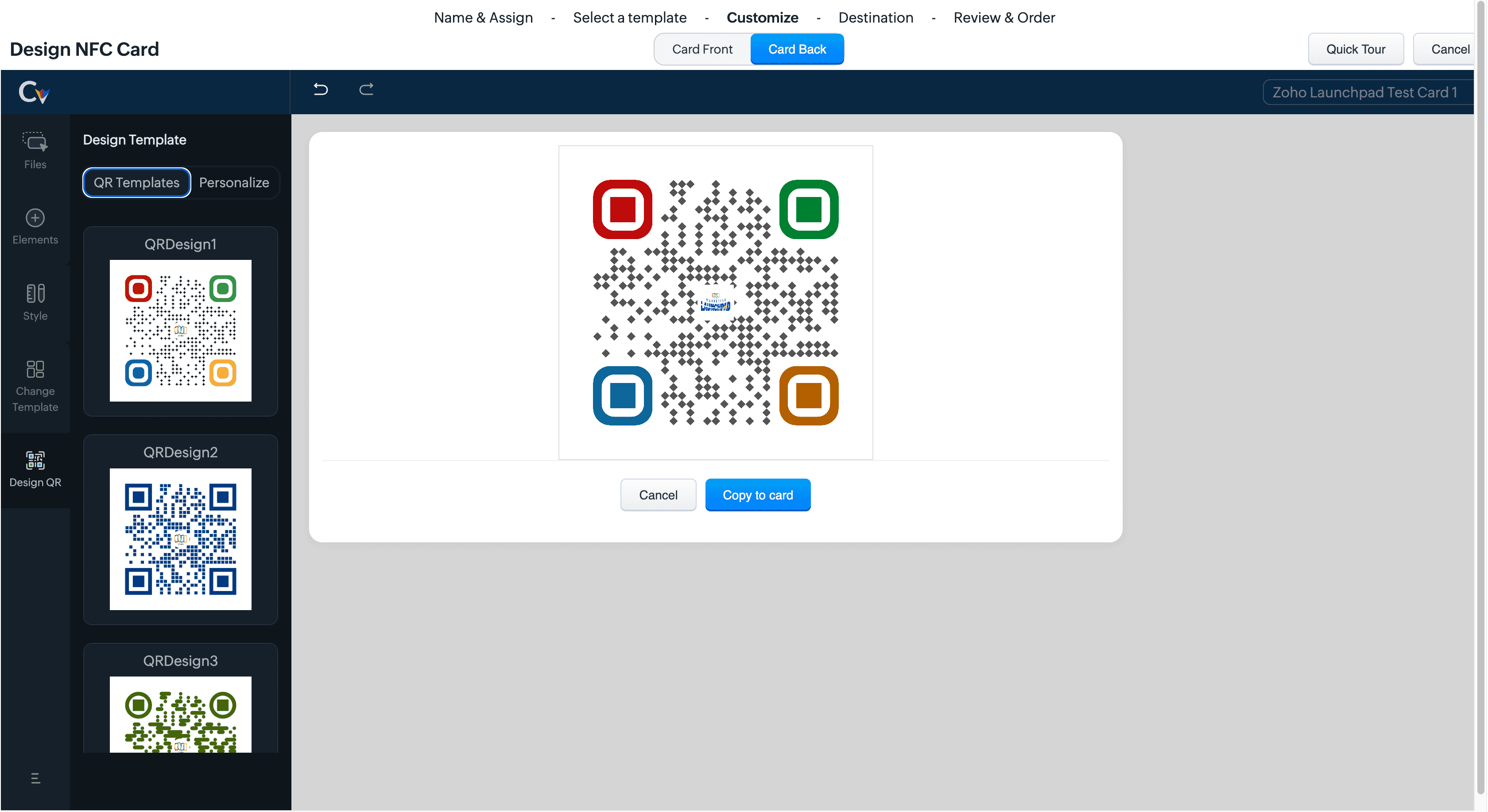 Click Card Back to view the QR code and its design options.