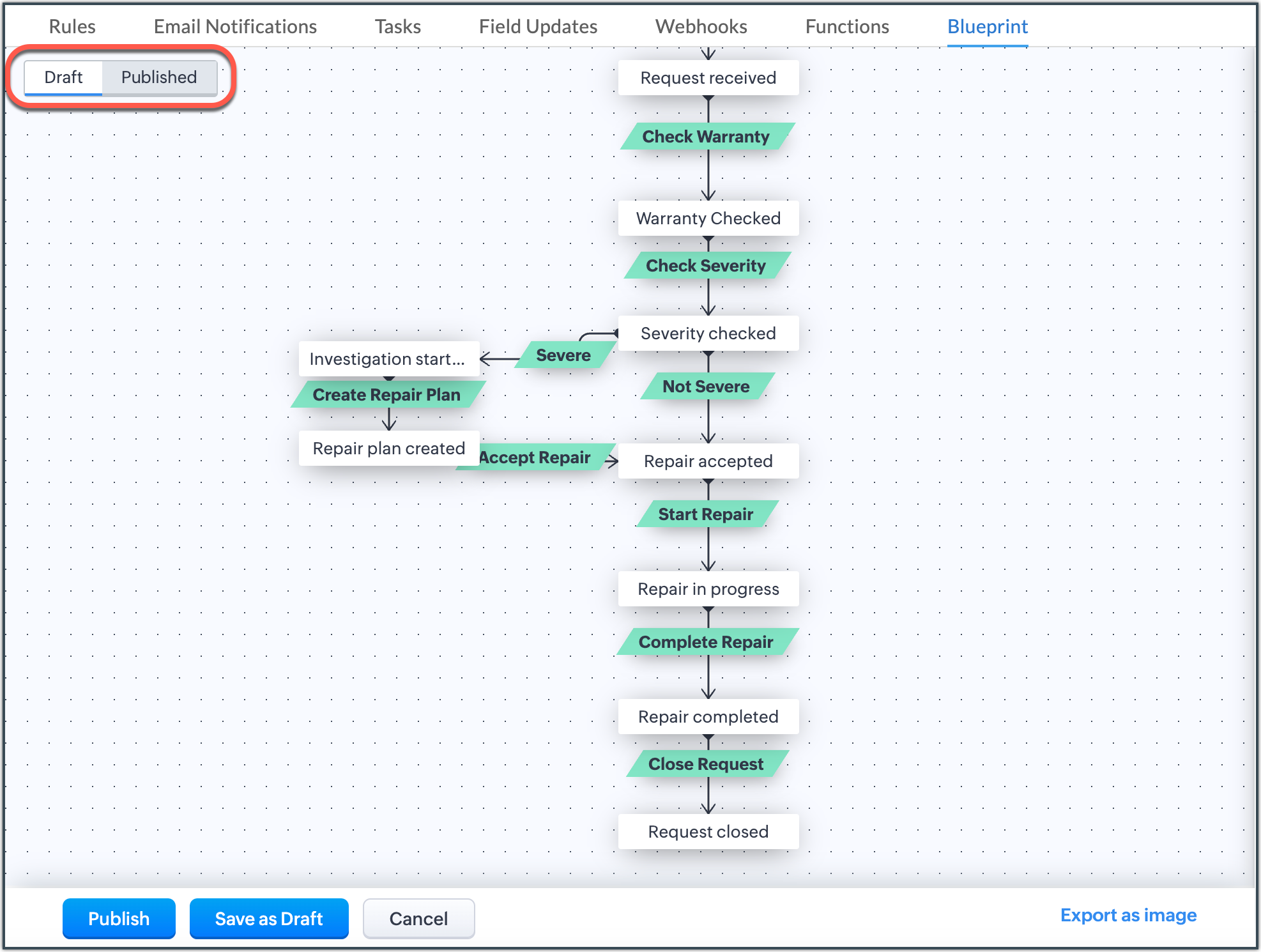 But ultimately, SLA is also a notification or a task/field update of sorts— the record at the end of the day, needs your manual intervention in order to progress further in the process. If you only want to be notified of escalations, you may configure SLAs. On the other hand, if you want the system to act and automatically move a record from one state to another at any point, you can now create automatic transitions.