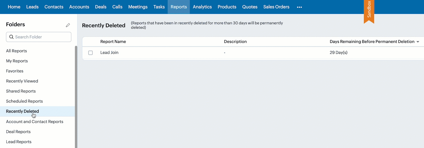 You can delete reports that you no longer use. The deleted reports will appear in the Recently Deleted list for 30 days, and then they will be permanently deleted. You can also choose to restore them from the Recently Deleted list, or delete them permanently before the 30 days have elapsed.