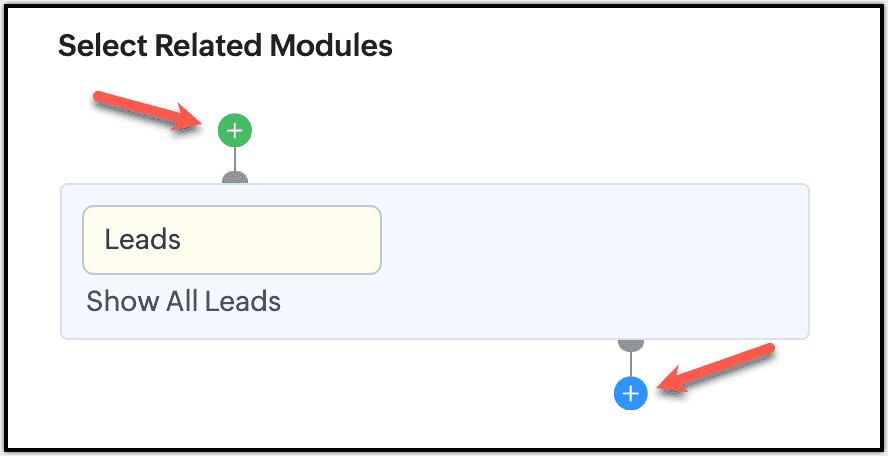 - Choose the primary module from the dropdown. If you want to add more data related to the primary module, click the + icons to add additional modules.