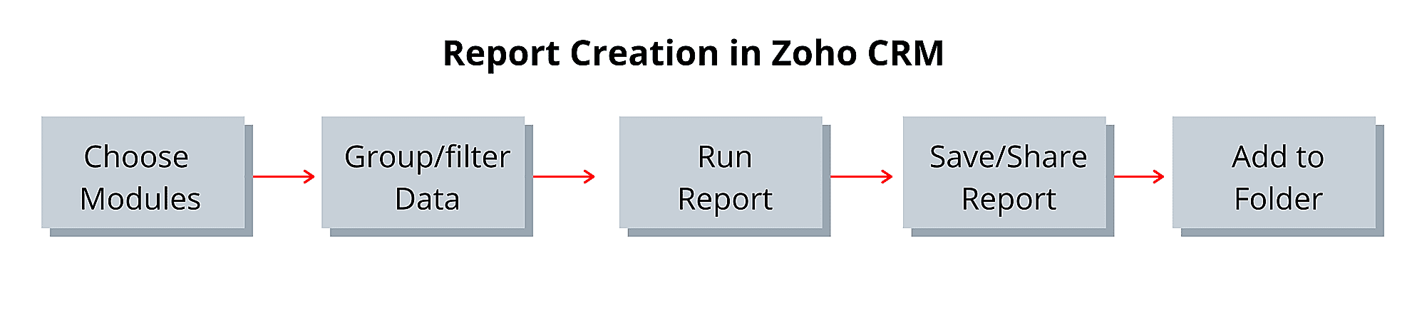 Reports can be created and shared in different formats by CEOs, managers, sales reps, and other users, and are built using data from one or more modules in your account. Reports can be created for a specific module and the data associated with it in another module, for example, accounts and their associated contacts or deals and their associated quotes.