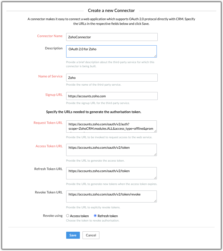 Revoke Token URL: Upon calling the Revoke Token URL, the application shall explicitly revoke tokens and revoke the granted access. Upon providing the Revoke Token URL, users are required to choose between Access Token or Refresh Token for the Revoke using field, which should be used when the Revoke token API call is made.