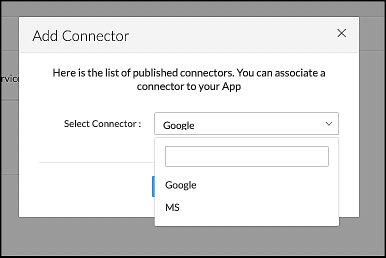 - Click Add Connector and choose the connector that you intend to associate.